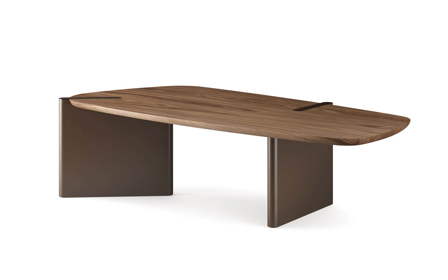 FLATIRON на Bonaldo е маса с изразена архитектурна естетика, проектирана от Mauro Lipparini, която впечатлява с плавни линии, динамична форма и силно присъствие в пространството. Плотът е с меки, органично заоблени ръбове и леко трапецовидна форма, което му придава движение и съвременен характер, а конструкцията е изградена от два вертикални панела, разположени асиметрично, така че масата изглежда едновременно стабилна и артистична. Моделът се предлага в различни размери, подходящи както за компактни, така и за просторни интериори, а изборът между изцяло дървена версия или комбинация от дървен плот с основа от мрамор позволява персонализиране според стила на помещението. FLATIRON е създадена като скулптурен, но функционален център на трапезарията – маса, която не просто служи, а оформя пространството и внася усещане за модерна елегантност и прецизен дизайн.