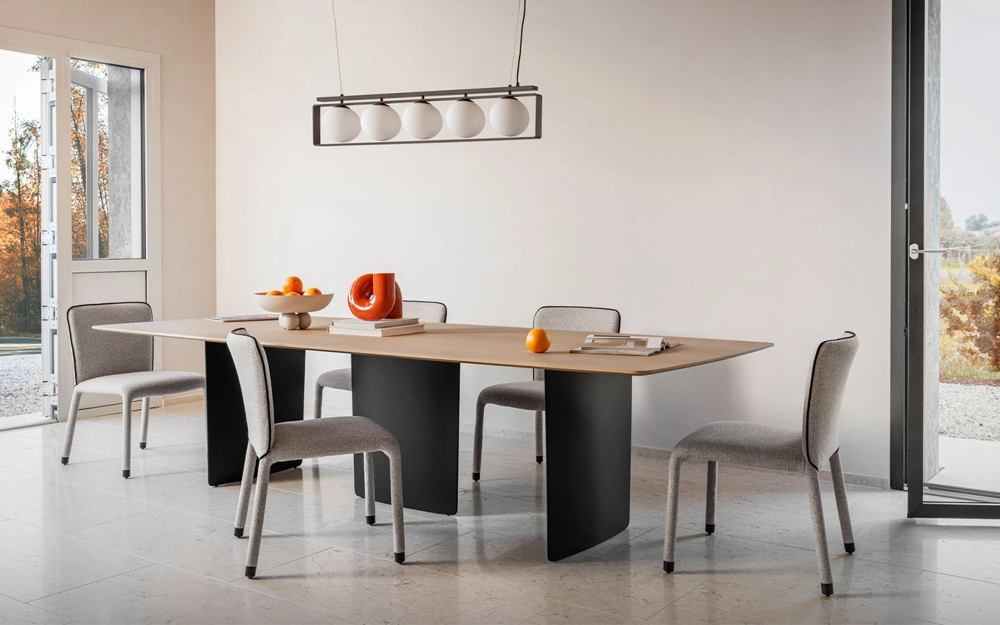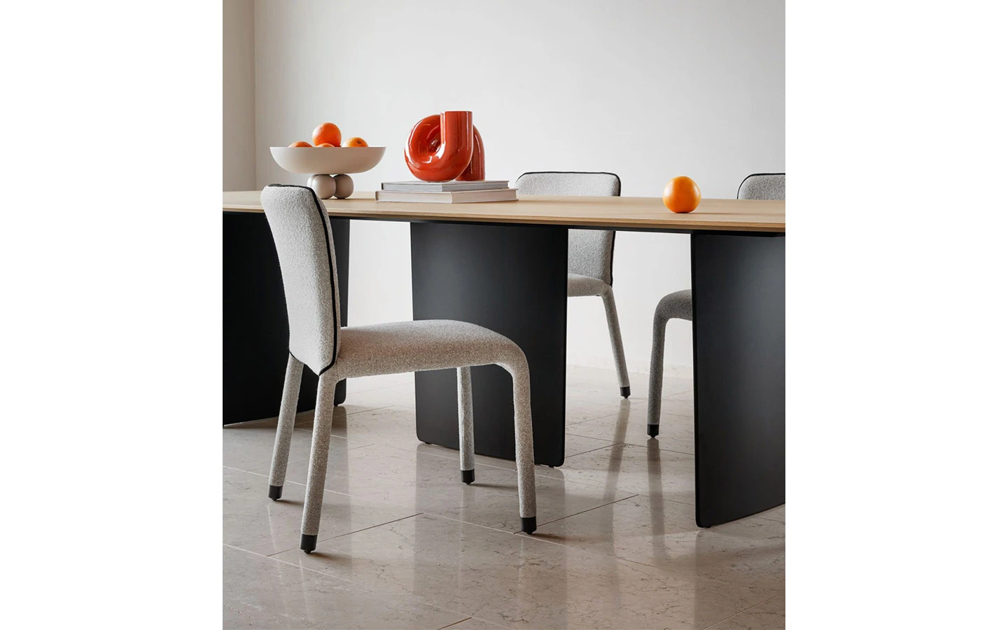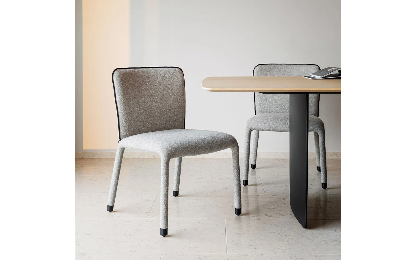 Масата FOIL BOTTE на италианския производител MIDJ, проектирана от Giovanni Crosera през 2024 г., е израз на динамика, лекота и инженерна прецизност, вдъхновена от аеродинамичните форми на съвременните състезателни яхти. Нейната архитектурна визия се изгражда около изключително елегантна основа, оформена от два или три метални елемента с формата на вертикални „фойлове“, които създават впечатление, че плотът буквално се носи във въздуха. Тази скулптурна поддръжка придава на масата не само стабилност, но и уникално визуално присъствие. Комбинацията между фино моделираната основа и избора на луксозни материали създава усещане за висок клас и съвременна естетика. Благодарение на своето универсално излъчване, масата FOIL BOTTE е идеална както за домашни интериори – модерни трапезарии или дневни с характер, така и за обществени пространства като офиси, галерии, ресторанти или шоуруми. Тя не просто изпълнява функцията на маса, а се превръща в централна композиция, която придава идентичност на пространството. FOIL BOTTE е съвременен прочит на италианския дизайн – балансиран, смел и с ясно изразен почерк.