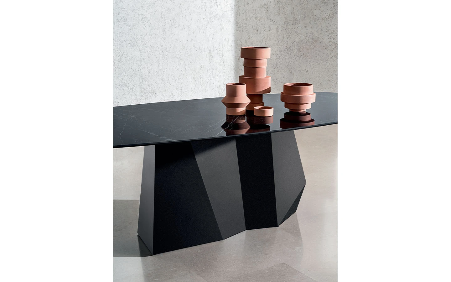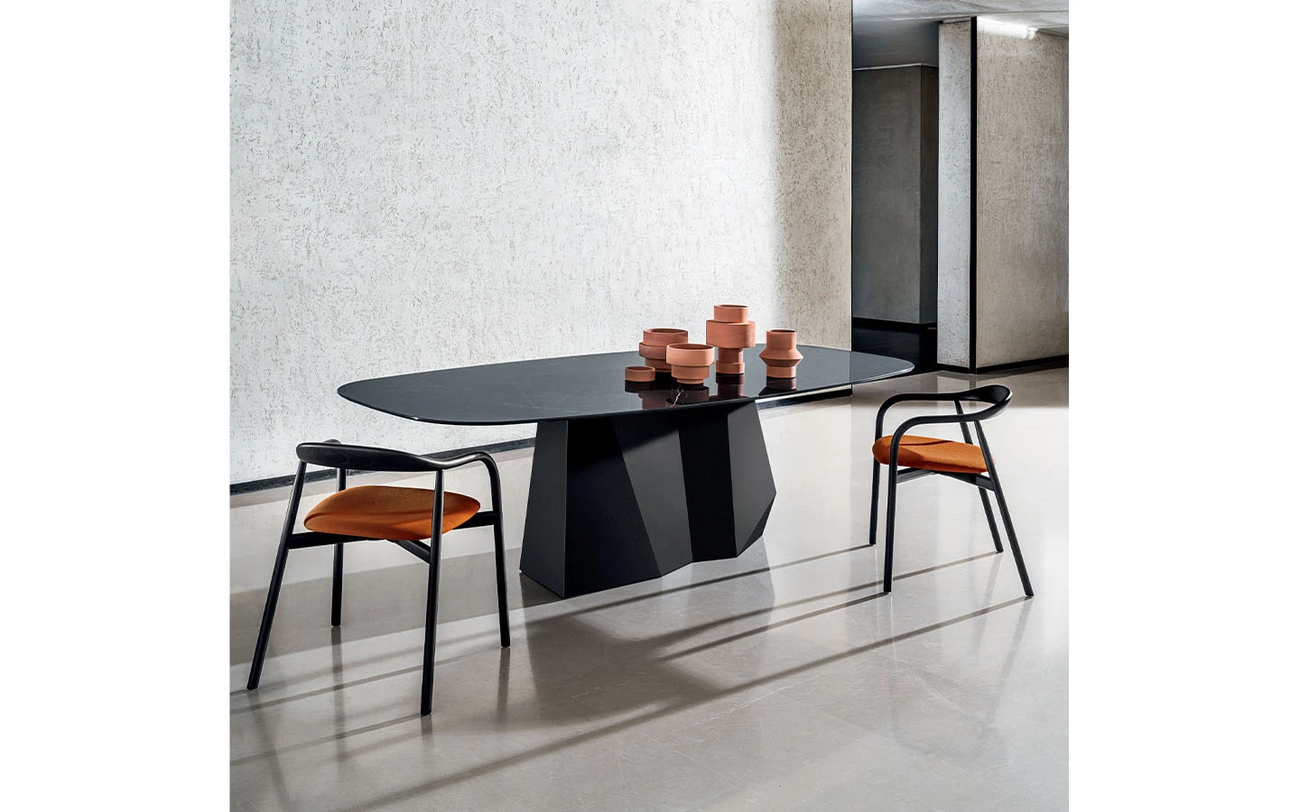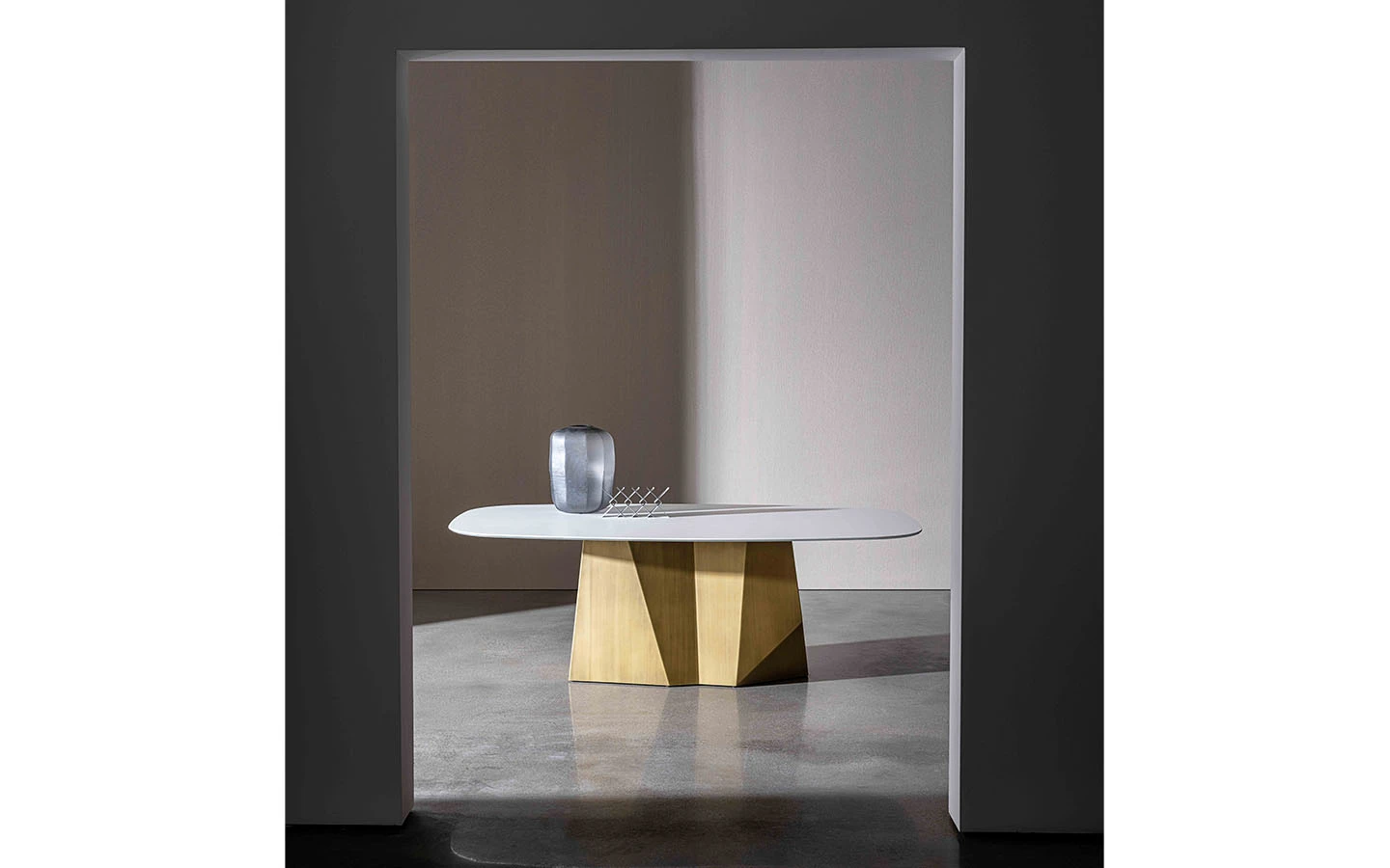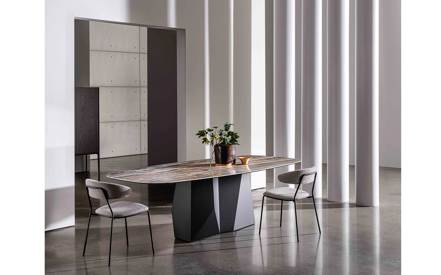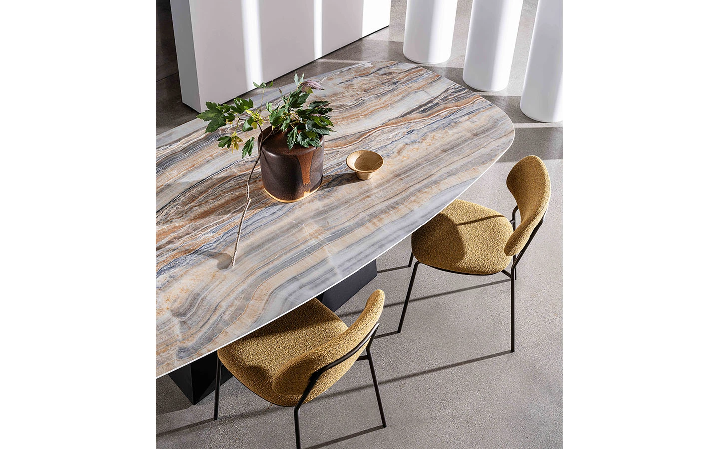 Масата GRANDEOD SHAPED от Sovet Italia е съвременно трапезарно решение, което съчетава модерен дизайн с висококачествени материали. Проектирана от Gianluigi Landoni, тя се отличава с уникална метална основа, вдъхновена от скулптурните линии на Доломитите, осигуряваща стабилност и артистичен акцент. Масата GRANDEOD SHAPED се предлага в различни размери, което я прави подходяща за разнообразни пространства. При желание могат да бъдат изработени и персонализирани размери, за да отговарят перфектно на всяка трапезария. Тази маса впечатлява с комбинацията си от висококачествени материали и внимателно проектиран дизайн, което я превръща в стилен и функционален акцент за всяко модерно пространство.