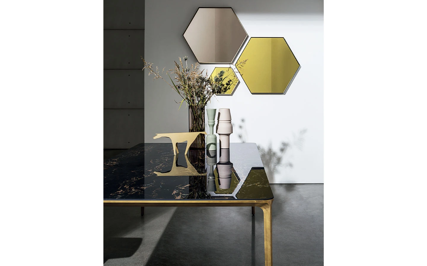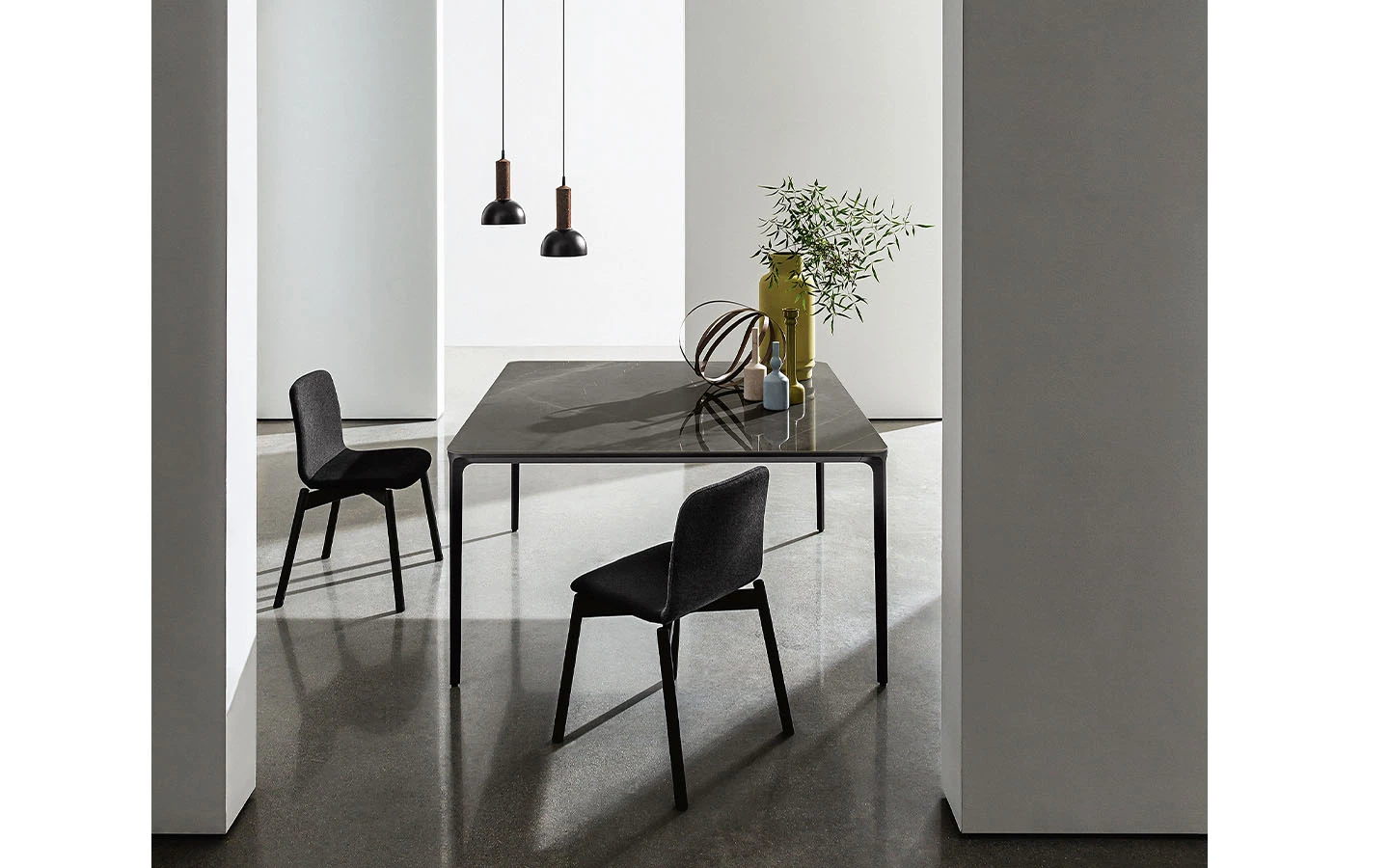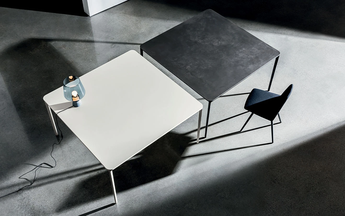 Масата SLIM SQUARE, проектирана от Matthias Demacker за Sovet Italia, въплъщава минималистична естетика, характеризираща се с изчистени линии и лека конструкция.