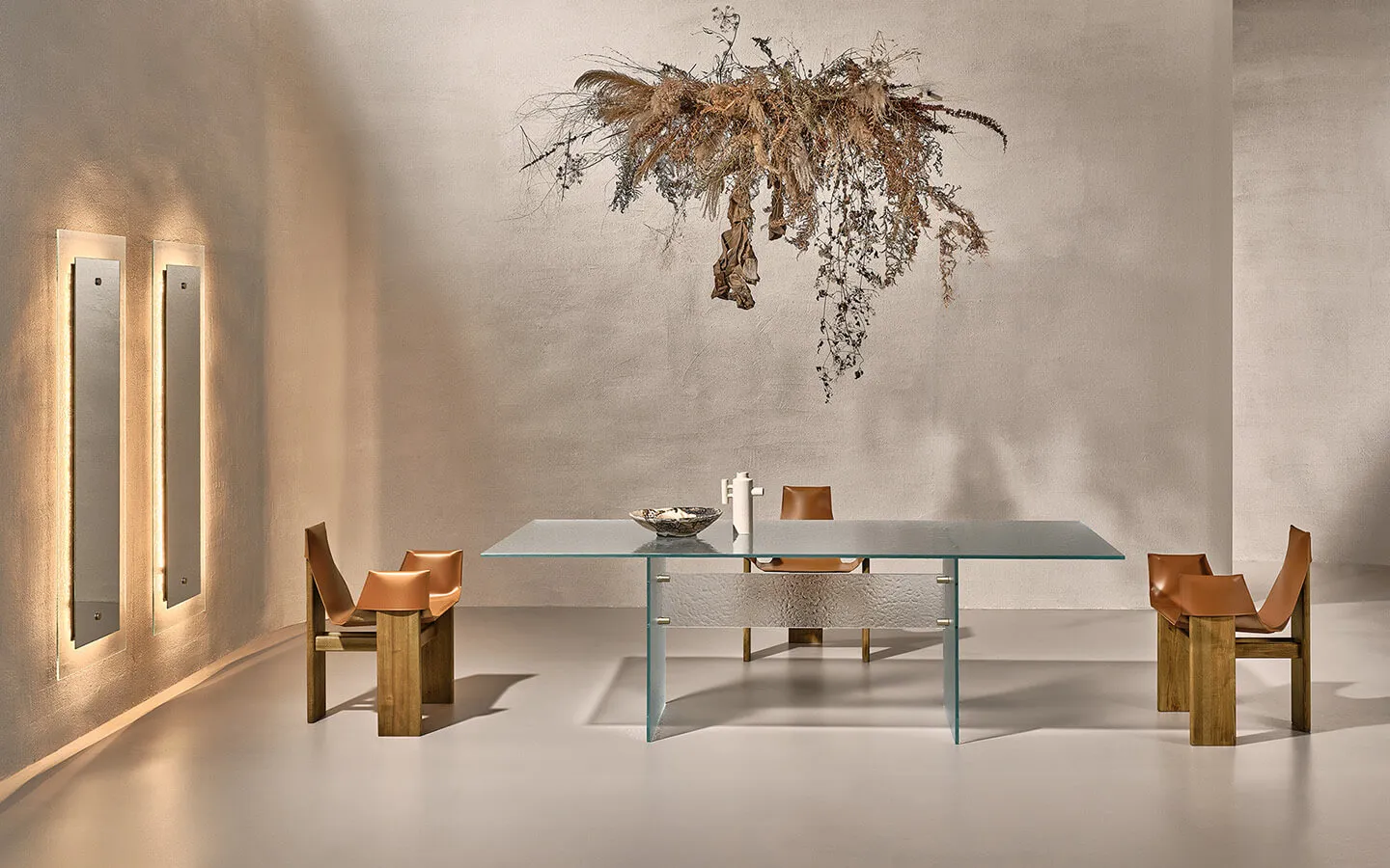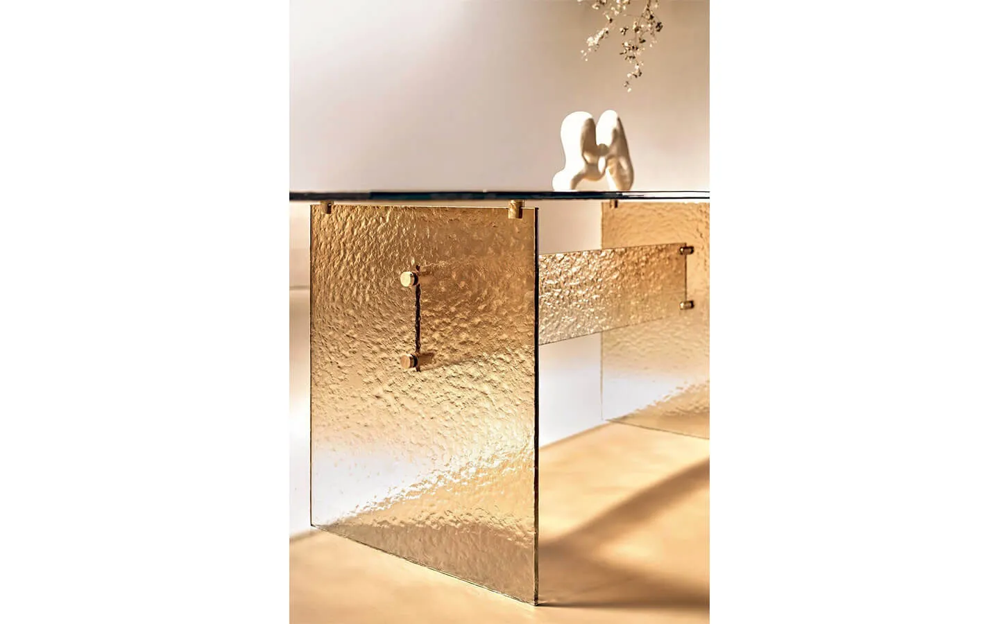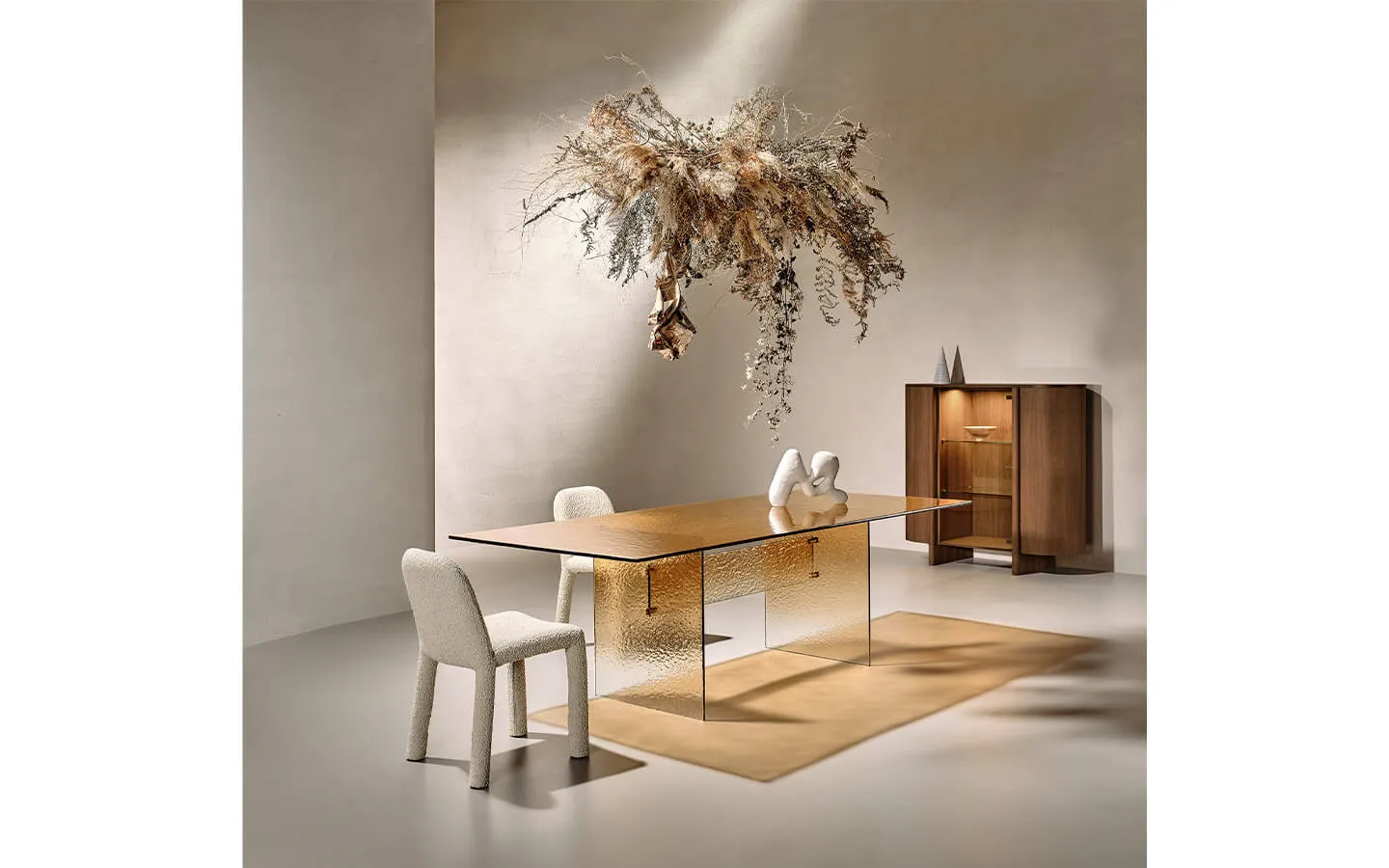 Трапезната маса WATERFALL на NATURE DESIGN е изцяло изработена от текстурирано ръчно стъкло и впечатлява с минималистичния си и изискан силует. Чистите линии и прозрачната структура създават усещане за лекота, а ефектът на стъклото напомня падаща вода, придавайки динамика и елегантност на интериора. Предлага се в няколко размера и в различни финиши на стъклото, които позволяват игра със светлината и цветовете в помещението. WATERFALL е идеален избор за модерни трапезарии и пространства, в които се търси впечатляваща маса, която остава визуално лека и ефирна.