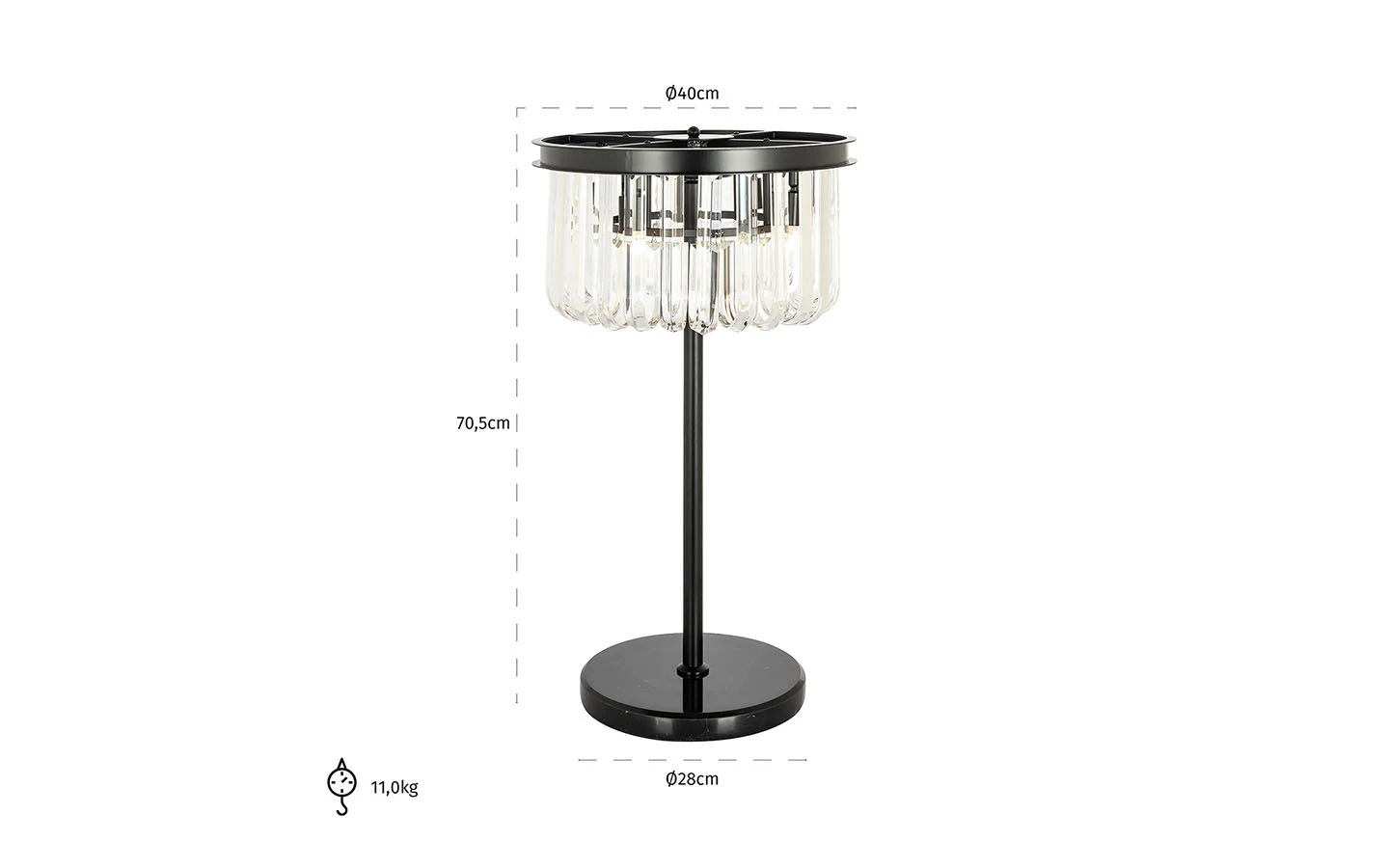 BESSY е настолна лампа от колекцията на нидерландския производител Richmond Interiors. Структурата е изработена от метал – финиш Black. Декоративните детайли са изработени от кристал.