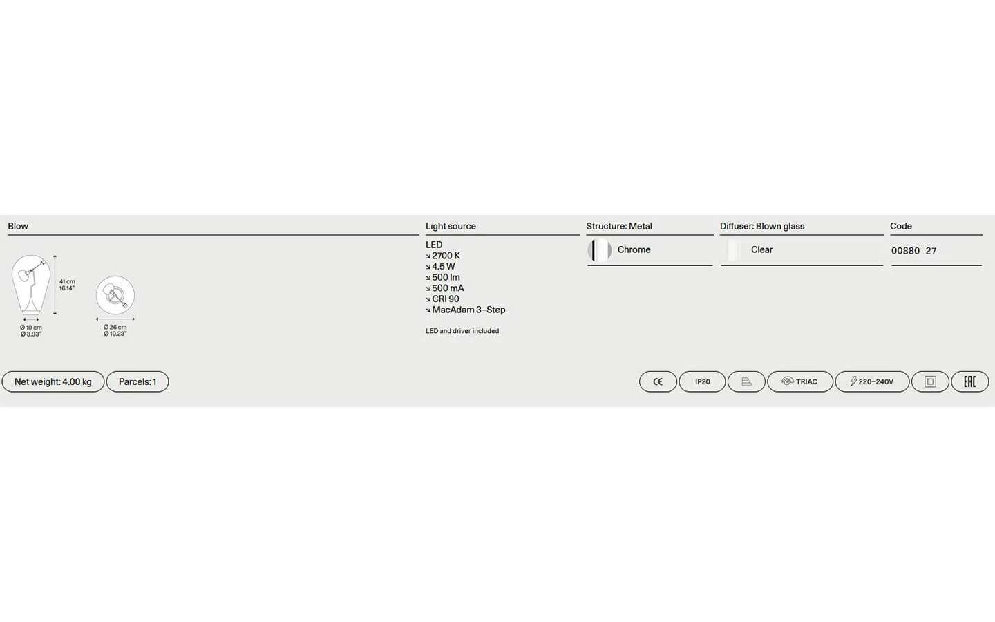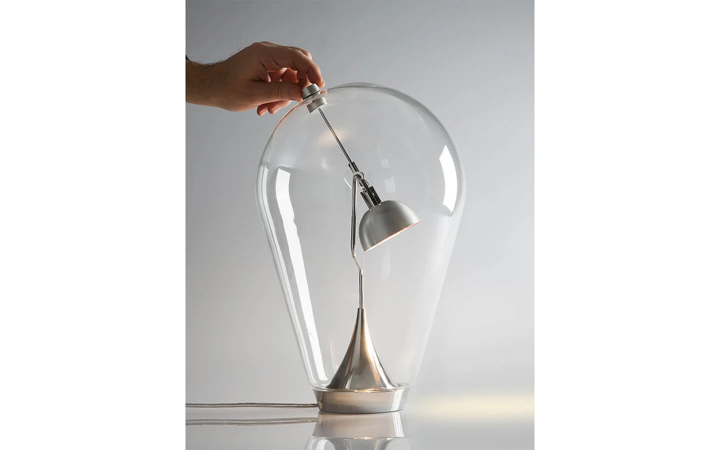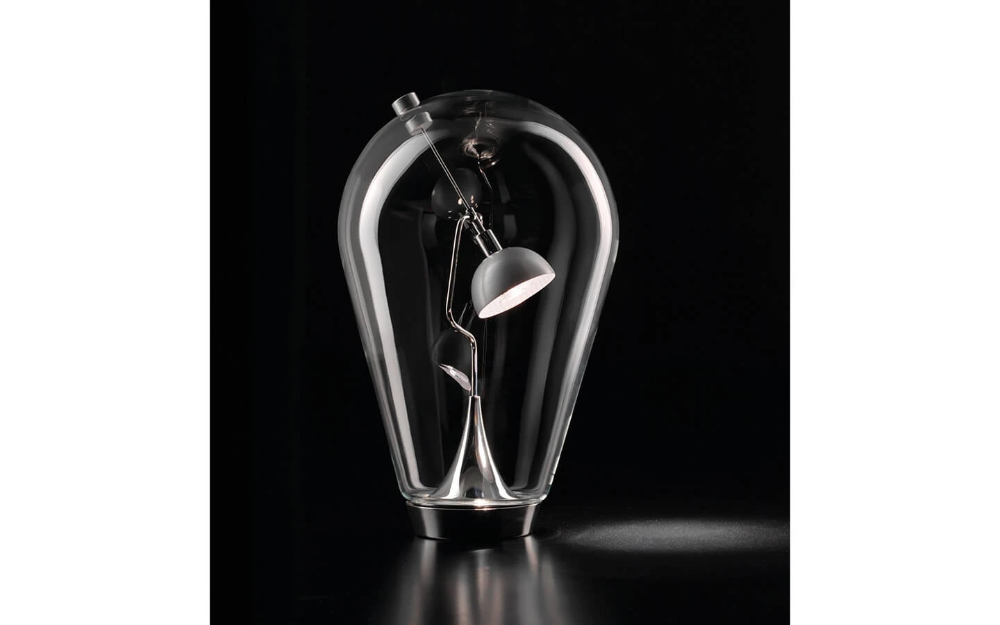 BLOW е настолна лампа от колекцията на италианския производител LODES. Структурата е изработена от метал – финиш Chrome. Дифузерът е изработен от прозрачно ръчно духано стъкло.