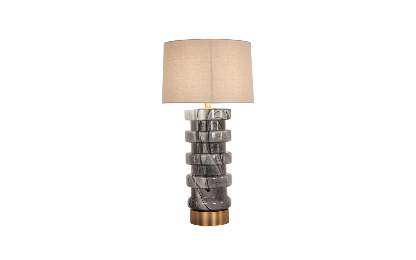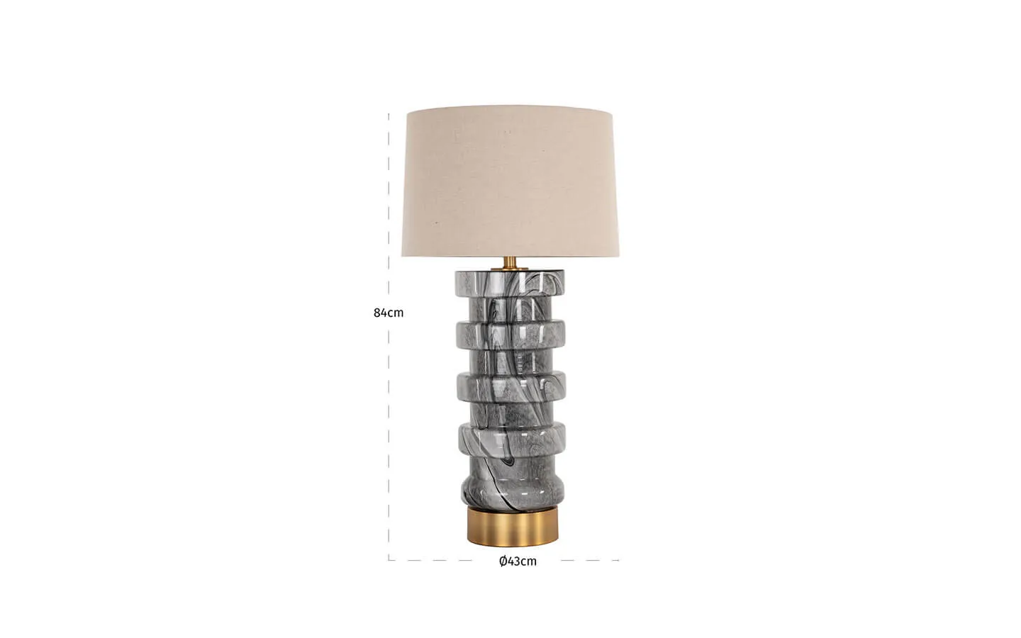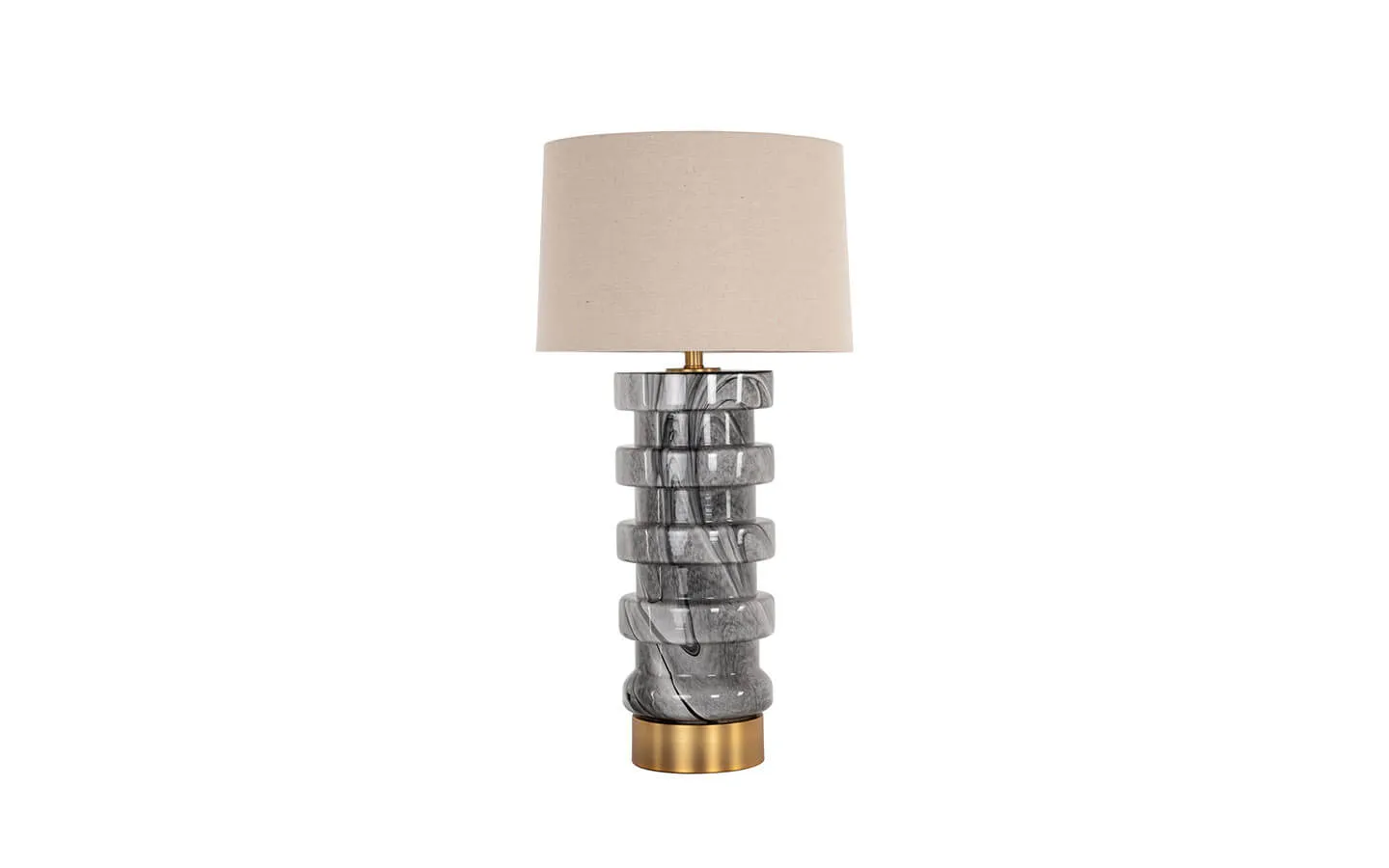 JAYLEE BLACK/WHITE е настолна лампа от колекцията на бранда Richmond Interiors. Структурата е изработена от стъкло. Детайлът по структурата е изработен от метал.