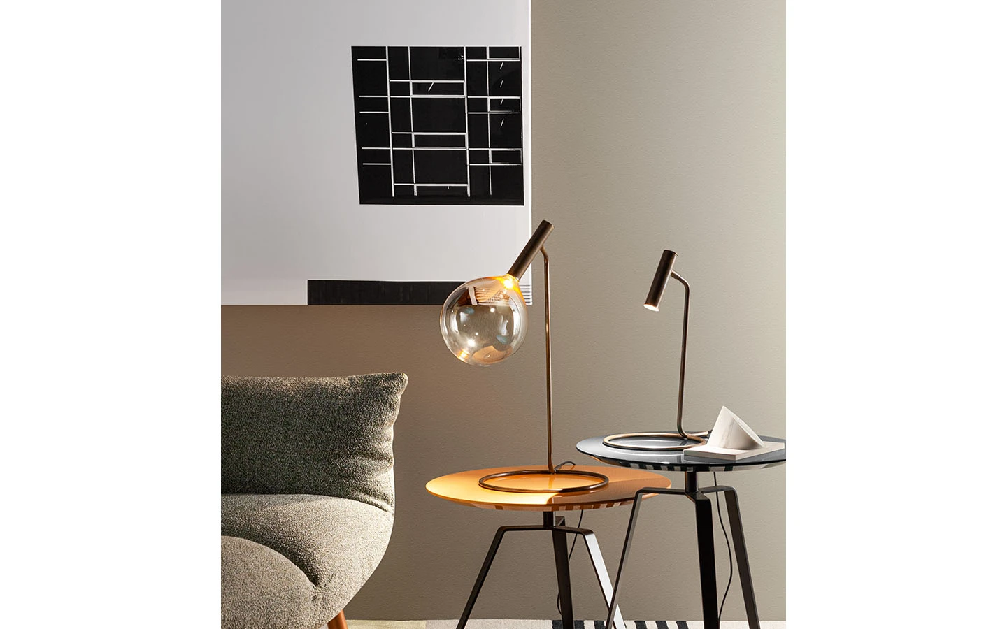 Настолната лампа SOFÌ, проектирана от Studio Team Design за Bonaldo, се отличава с изискан глобус от боросиликатно стъкло с топъл кехлибарен финиш, комбиниран с цилиндър от патиниран месинг, който съдържа светлинния източник. Този дизайн напомня за майсторите стъклари, оформящи разтопено стъкло в работилниците на Венеция. Колекцията SOFÌ включва висящи лампи, лампиони, два варианта на настолни лампи (едната без стъклен глобус и по-висока версия с глобус) и аплици с двупосочно разпределение на светлината.