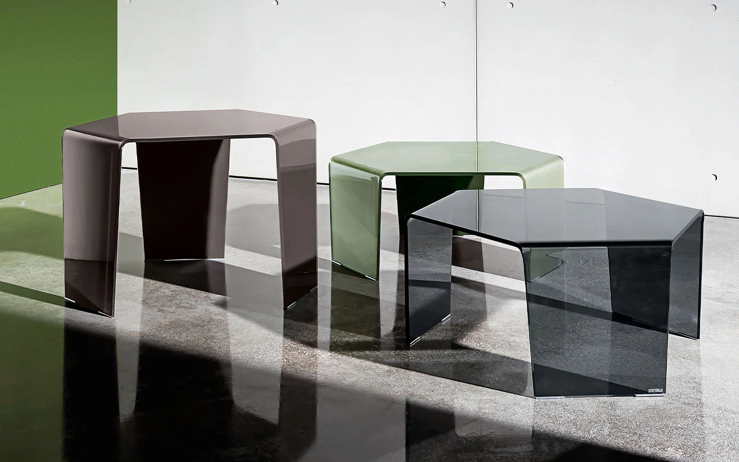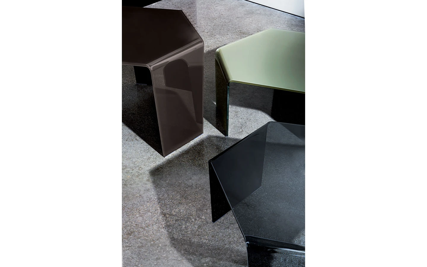 3 FEET е колекция от шестоъгълни маси за кафе, изработени от огънато стъкло. Те придават на дома оригинален акцент. Масите могат да се комбинират по различни начини, като се подреждат на различни височини и с разнообразни покрития.