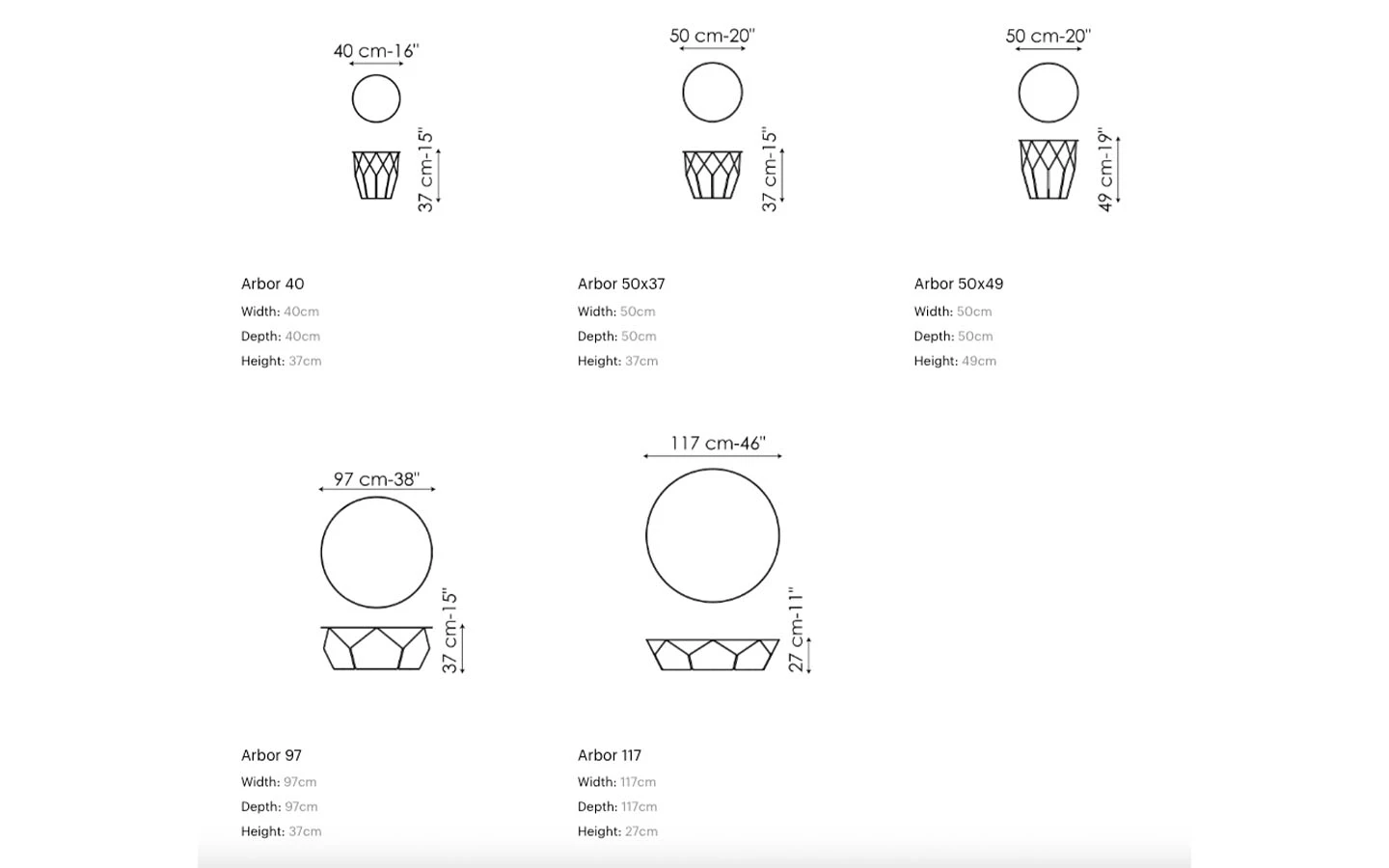 ARBOR LOW TABLE е италианска ниска маса от колекцията на италианския производител Bonaldo. Основата на масата е изработена от метал – голямо разнообразие от финиши по избор на клиента. Плотът на масата може да бъде от метал, стъкло или керамика – разнообразие от финиши по избор на клиента. Цената на масата се формира на база на избора на размер, вид плот и финиш на основата.