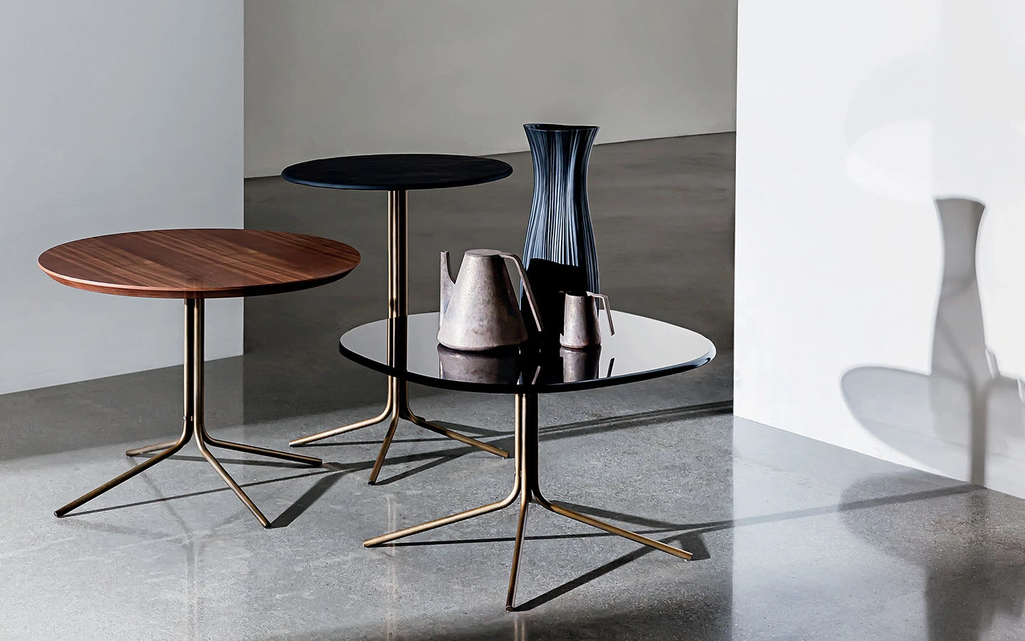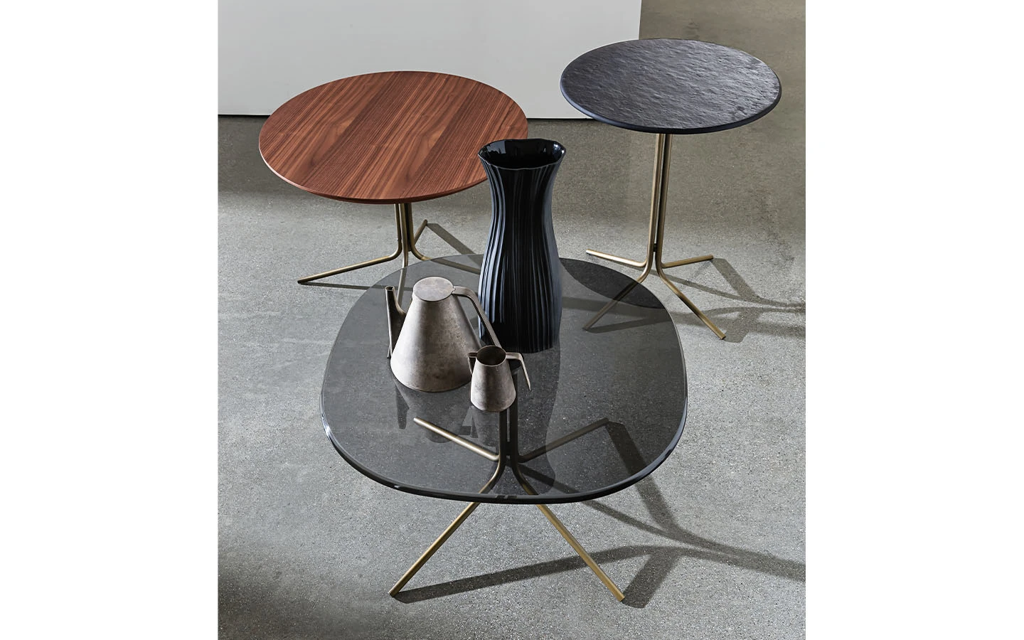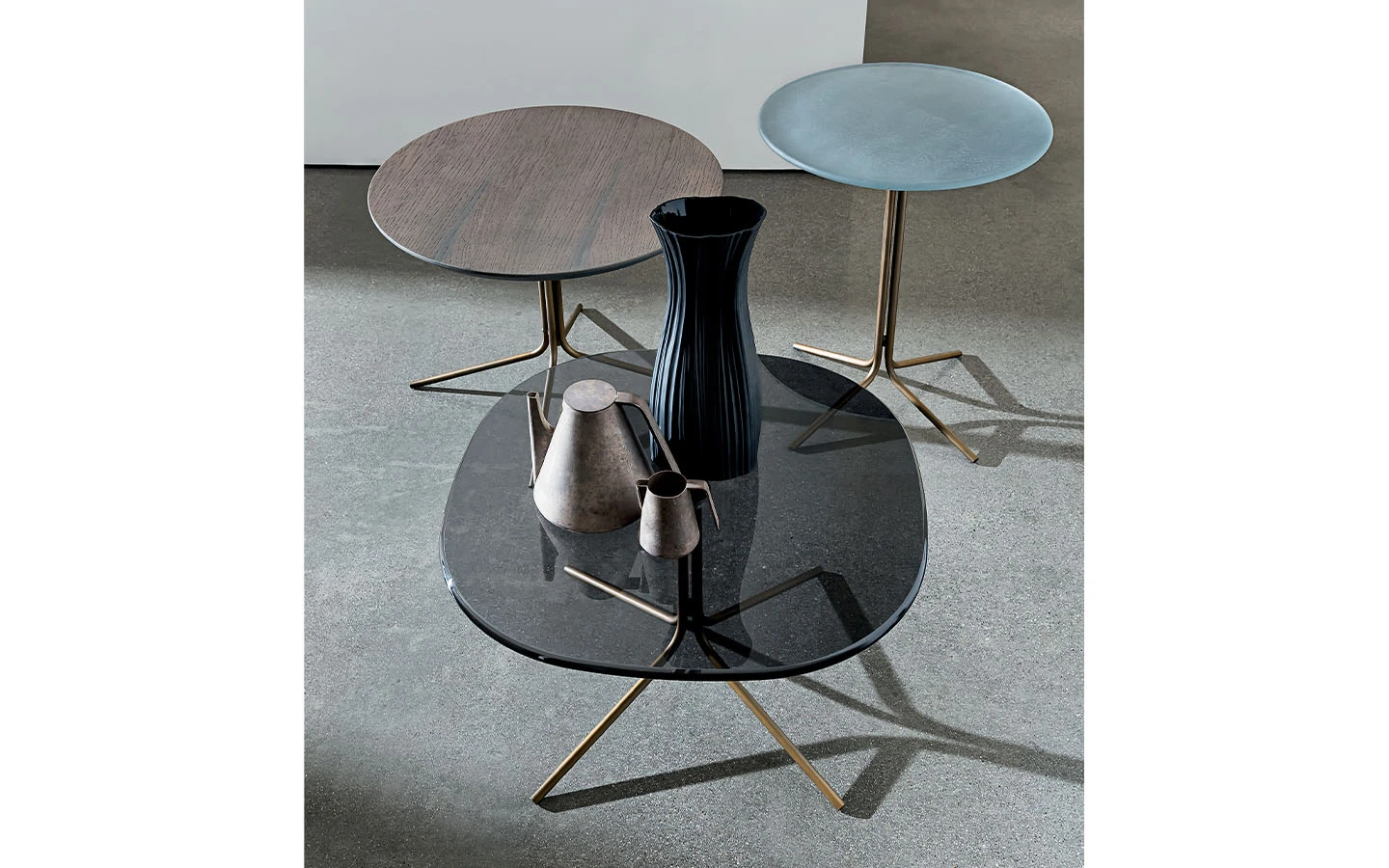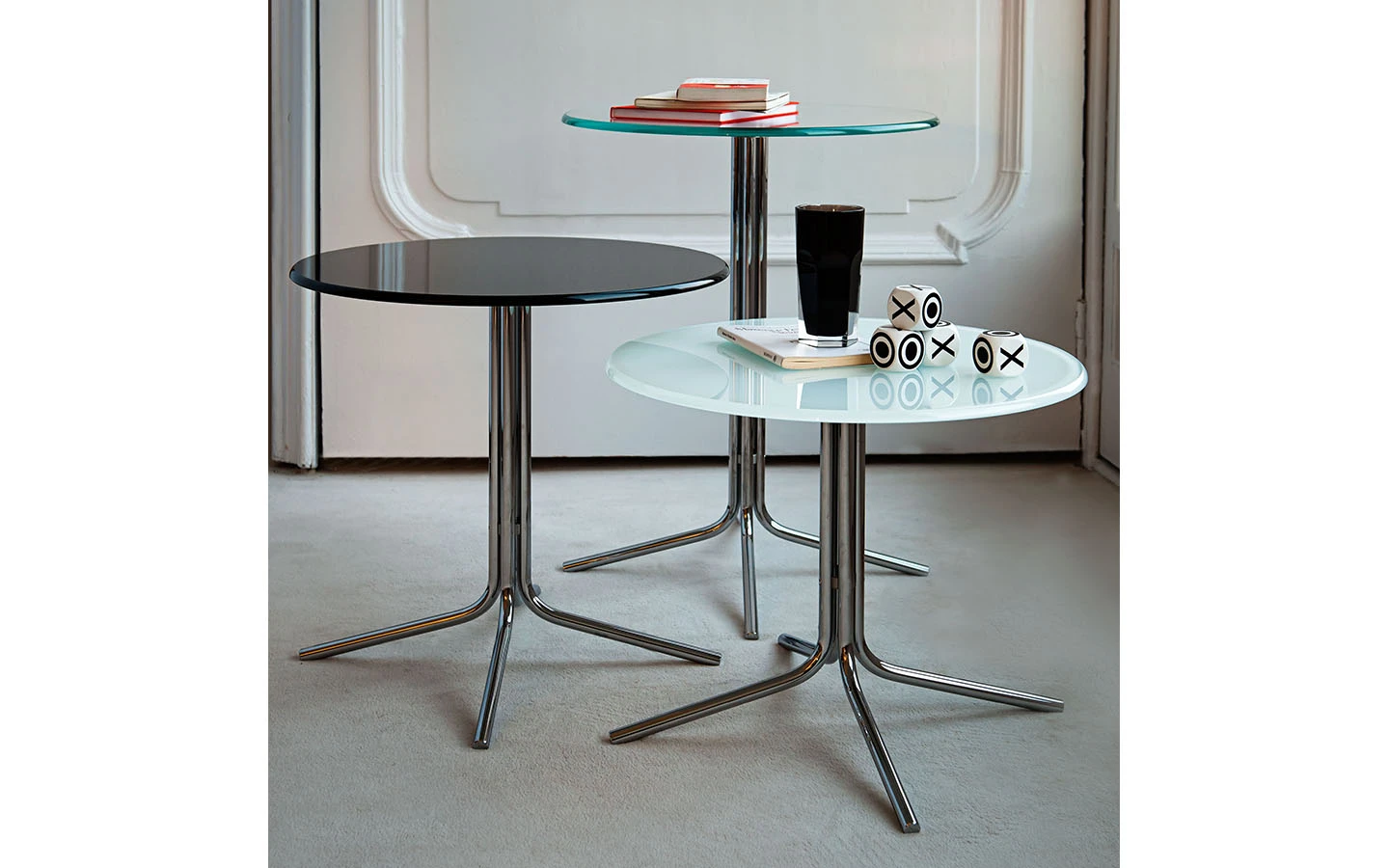 GENIUS е оригинална и универсална колекция маси за кафе, налична в различни форми, размери, материали за плота и в различни покрития за металната основа. Идеална е като масичка за лампа/кафе и перфектно се съчетава с всякакъв вид мебели, благодарение на своята универсалност.