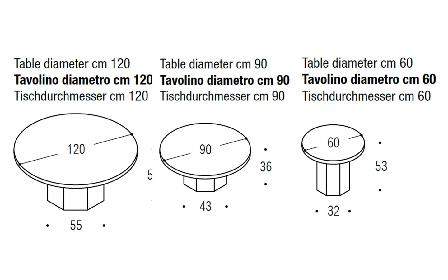Посочената цена е за ниска маса с размери см. Ø 60/53Н.