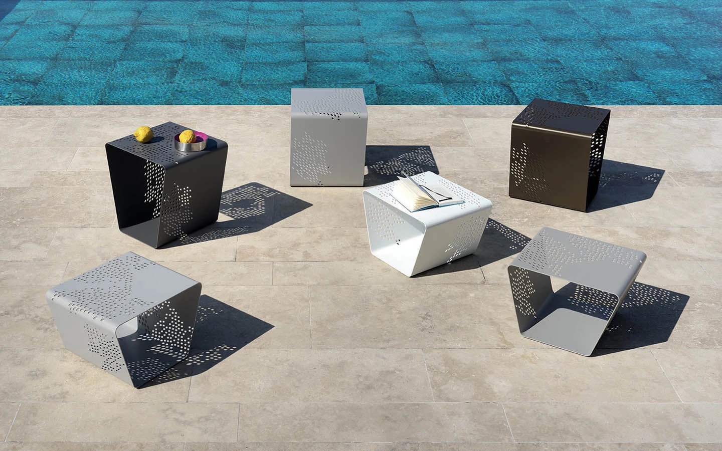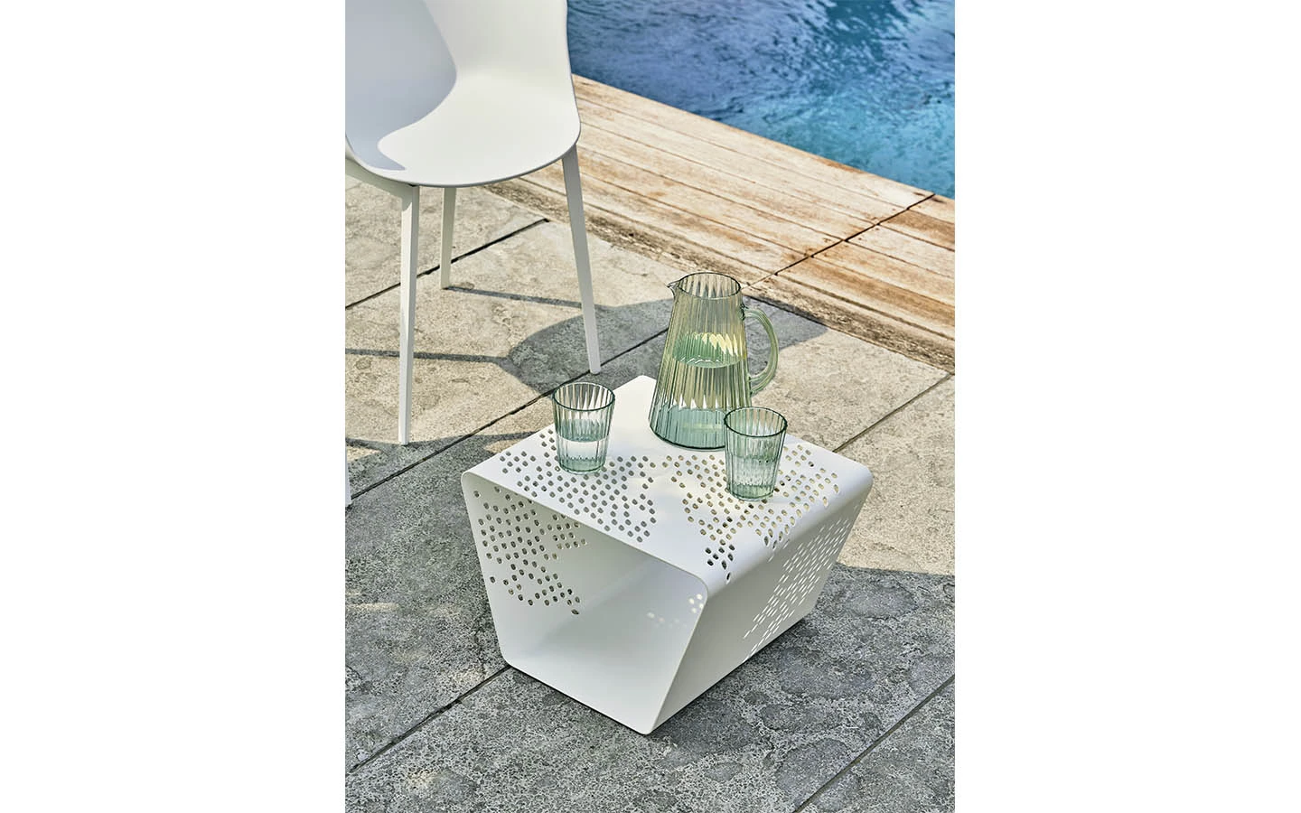 PATTERN OUTDOOR от Bontempi Casa е универсално решение, подходящо както за интериор, така и за екстериор. Изцяло изработена от метал с ажурен дизайн, тя придава изисканост на всяко пространство. Благодарение на своята уникална конструкция, масата може да се използва не само като помощна масичка, но и като пуф или поставка за списания, което я прави изключително практична. Здравата ѝ конструкция гарантира устойчивост на външни условия, което я прави идеален избор за градини, тераси и външни пространства.