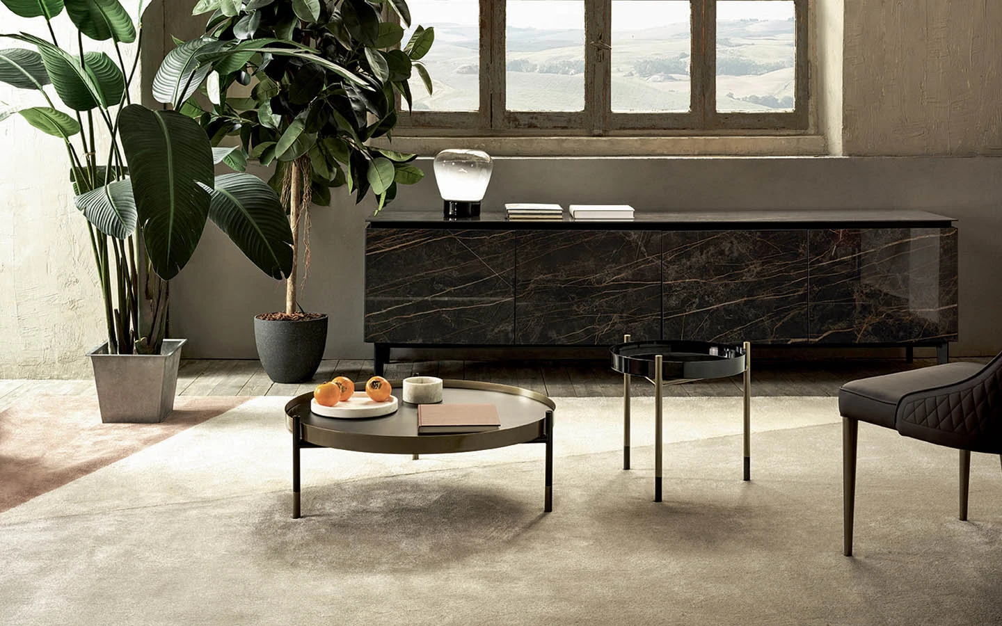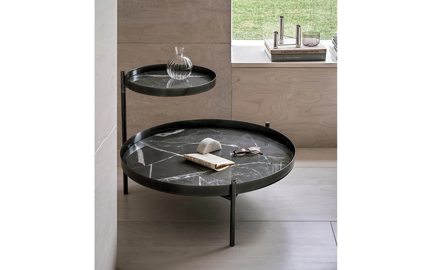 PLANET е ниска холна маса от Bontempi Casa, проектирана от Solido Studio, която се отличава с метална основа с декоративни детайли по краката и рамката. Тя се предлага в две конфигурации: вариант с един плот и вариант с два плота, като горният плот е регулируем. Голямото разнообразие от покрития и материали за основата и плотовете позволява широка персонализация, което прави PLANET подходяща за различни интериорни стилове и предпочитания. Комбинацията от висококачествени материали, персонализирани покрития и уникален дизайн прави PLANET стилно и универсално допълнение към модерните жилищни пространства.