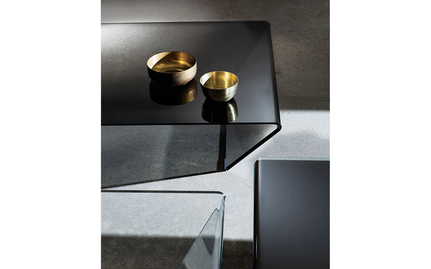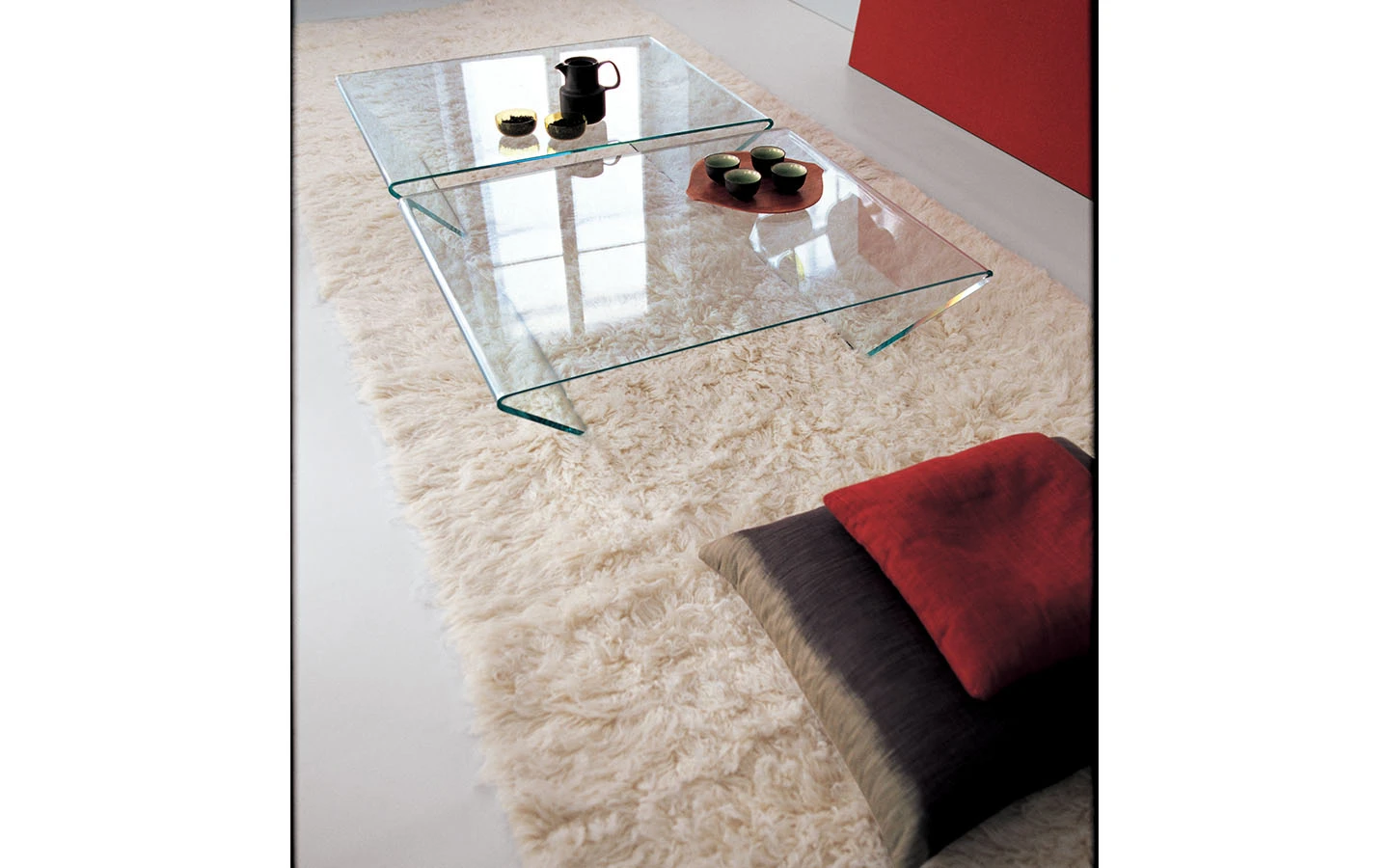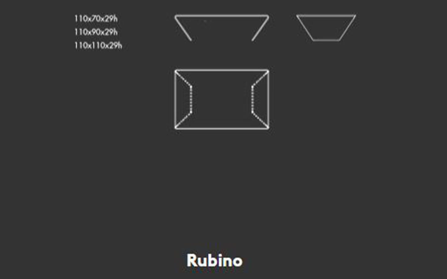 RUBINO е италианска ниска маса от колекцията на италианския производител Sovet. Структурата на масата може да бъде изработена от прозрачно стъкло, опушено стъкло, стъкло в един цвят или в комбинация от два цвята по избор. Цената на масата се формира на база на избора на размер и вид и финиш на стъклото.
