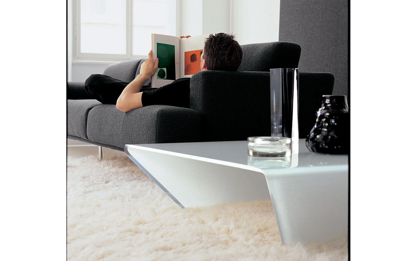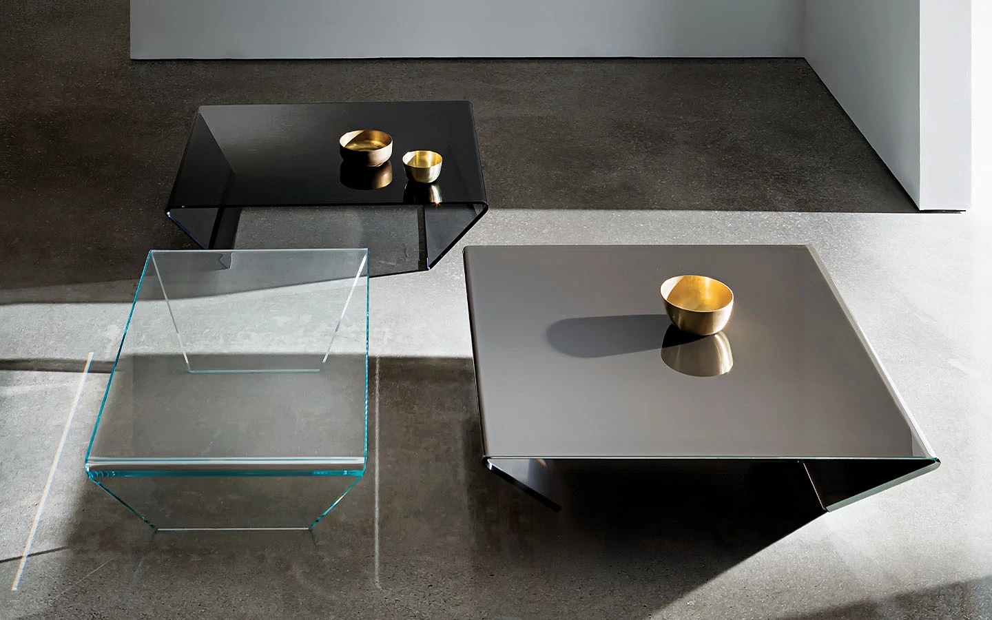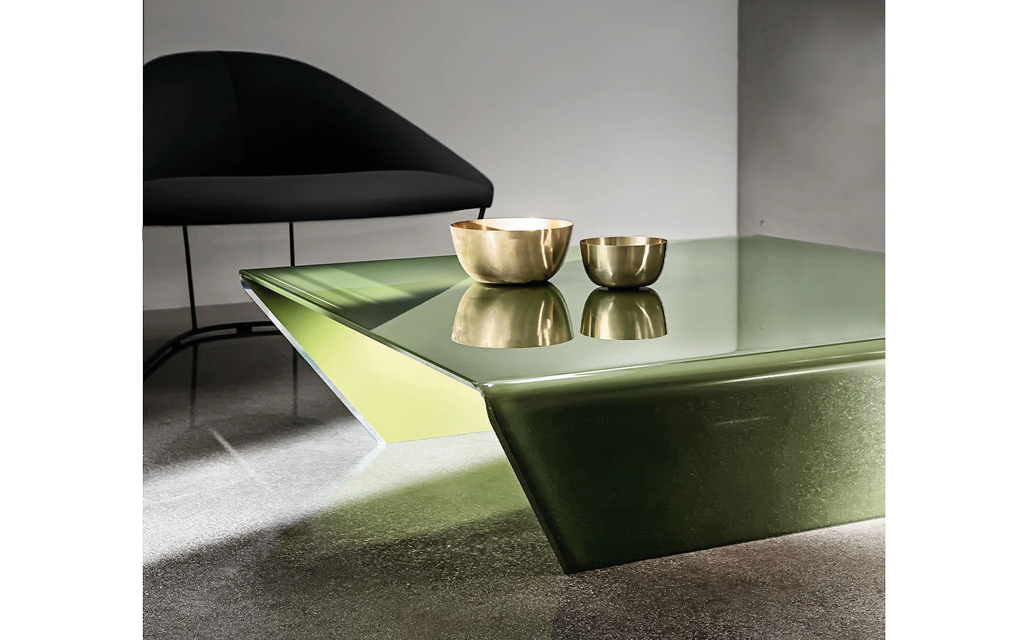 RUBINO е италианска ниска маса от колекцията на италианския производител Sovet. Структурата на масата може да бъде изработена от прозрачно стъкло, опушено стъкло, стъкло в един цвят или в комбинация от два цвята по избор. Цената на масата се формира на база на избора на размер и вид и финиш на стъклото.