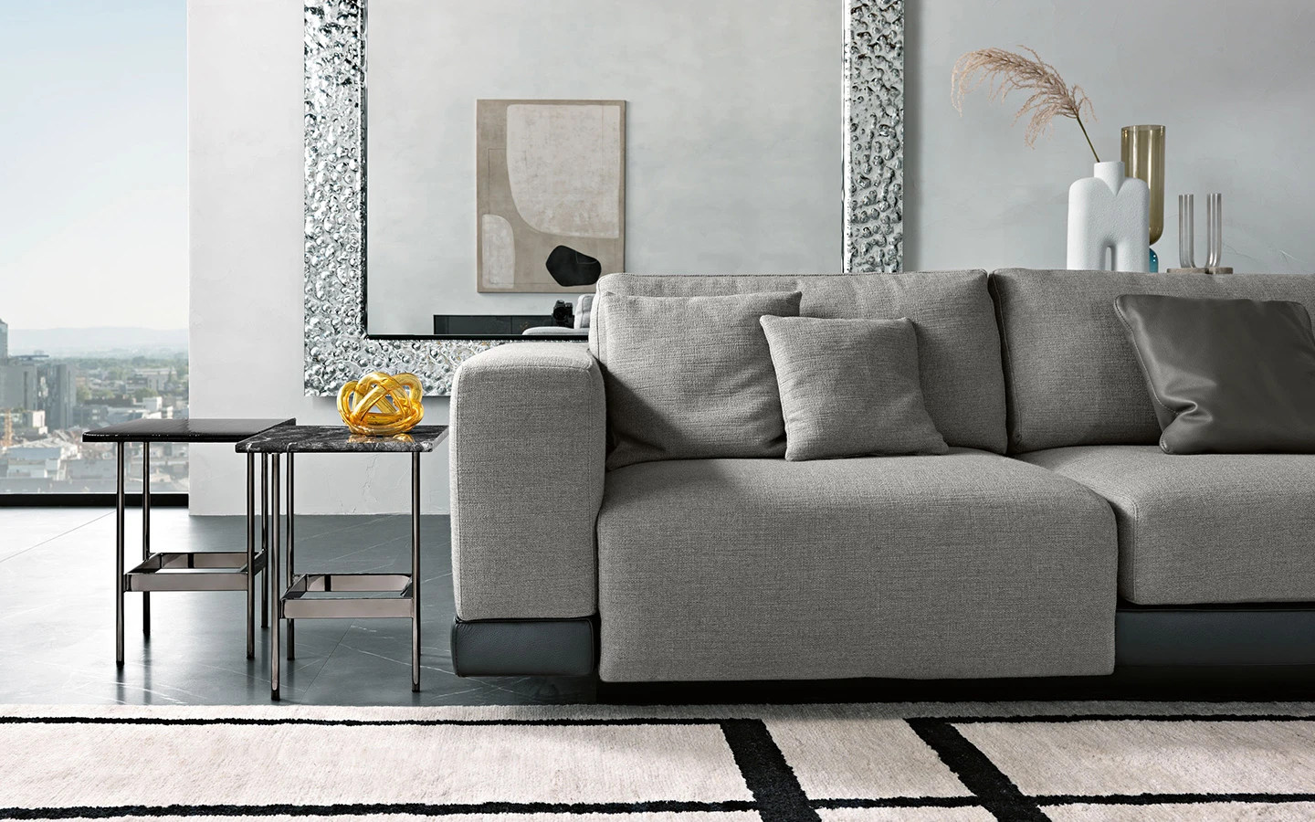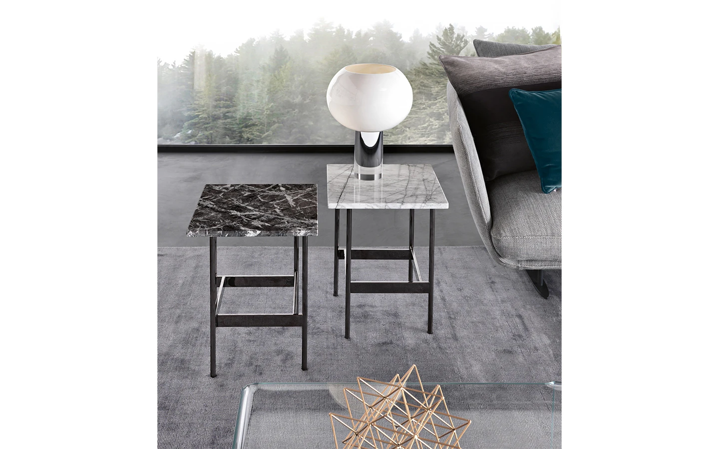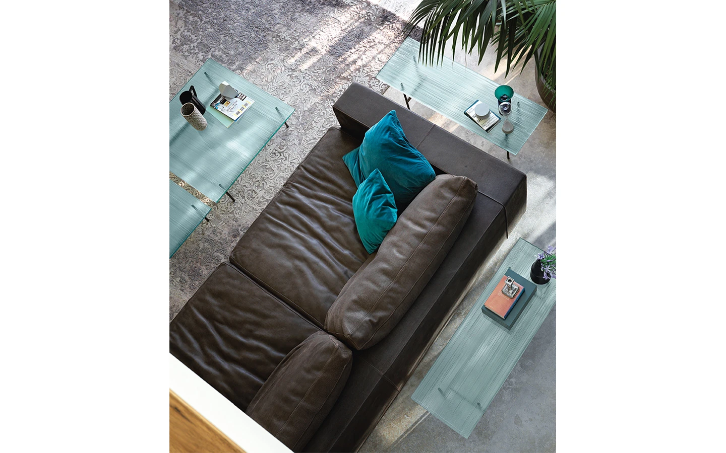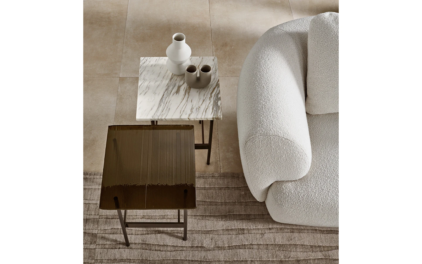 Ниската маса WAVES от FIAM Italia, проектирана от Ludovica + Roberto Palomba, демонстрира иновативно стъкларско майсторство и модерен дизайн. Този дизайн предоставя уникално визуално изживяване, като изгледът на стъклените повърхности се променя в зависимост от ъгъла на наблюдение, създавайки динамичен ефект.