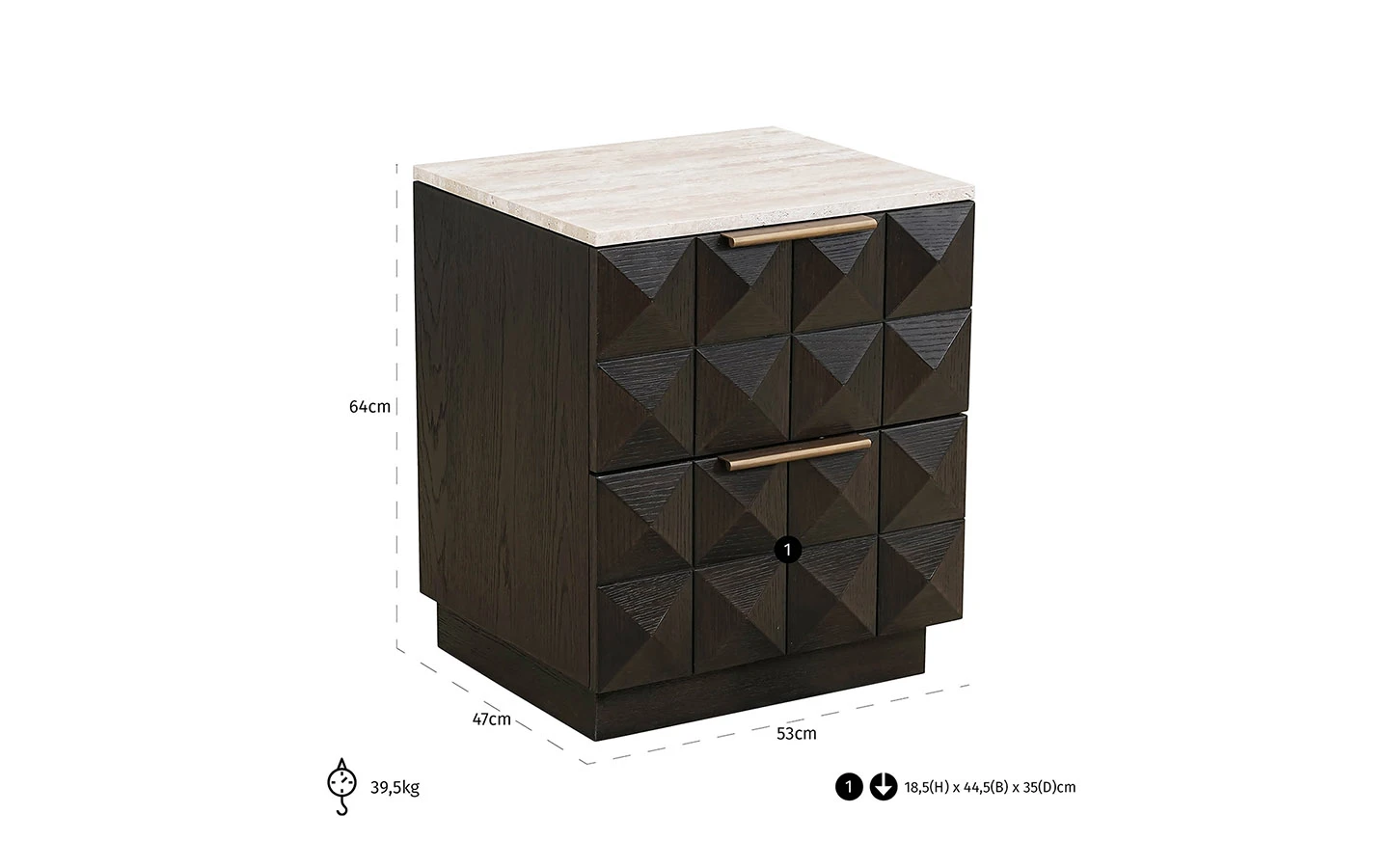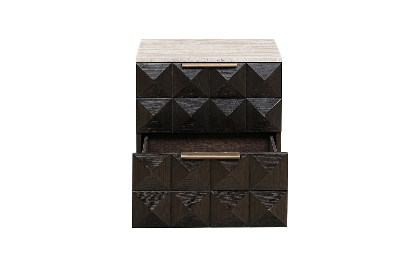 CLAREMONT 2 DRAWERS е нощно шкафче от колекцията на нидерландския производител Richmond Interiors. Нощното шкафче е изработено от фурнировано дърво – финиш Brown. Плотът е изработен от камък.