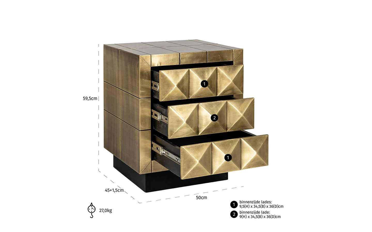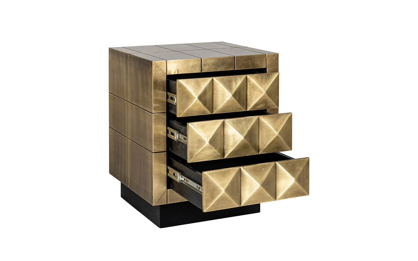 COLLADA 3 DRAWERS е нощно шкафче от колекцията на нидерландския производител Richmond Interiors. Нощното шкафче е изработено от MDF и месинг – финиш Brushed Gold.