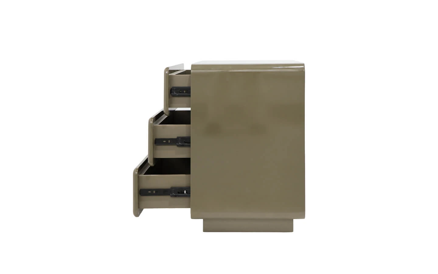 DEMY CLAY GREEN от RICHMOND INTERIORS е елегантно нощно шкафче, което съчетава модерен дизайн с меко и успокояващо излъчване. Нежният цвят clay green внася свежест и баланс в интериора, като създава спокойна атмосфера в спалнята и се комбинира лесно както с неутрални, така и с по-наситени тонове. Дизайнът е изчистен и хармоничен, с фини заоблени линии, които придават усещане за лекота и изисканост. Шкафчето разполага с практично пространство за съхранение чрез няколко чекмеджета, които позволяват удобно организиране на лични вещи и аксесоари, като същевременно поддържат подреден вид на пространството. Горният плот е подходящ за нощна лампа, книга или декорации, което го прави функционално допълнение към всяка спалня. Стабилната конструкция гарантира надеждност и дълготрайност, а цялостният дизайн внася стил и завършеност в интериора