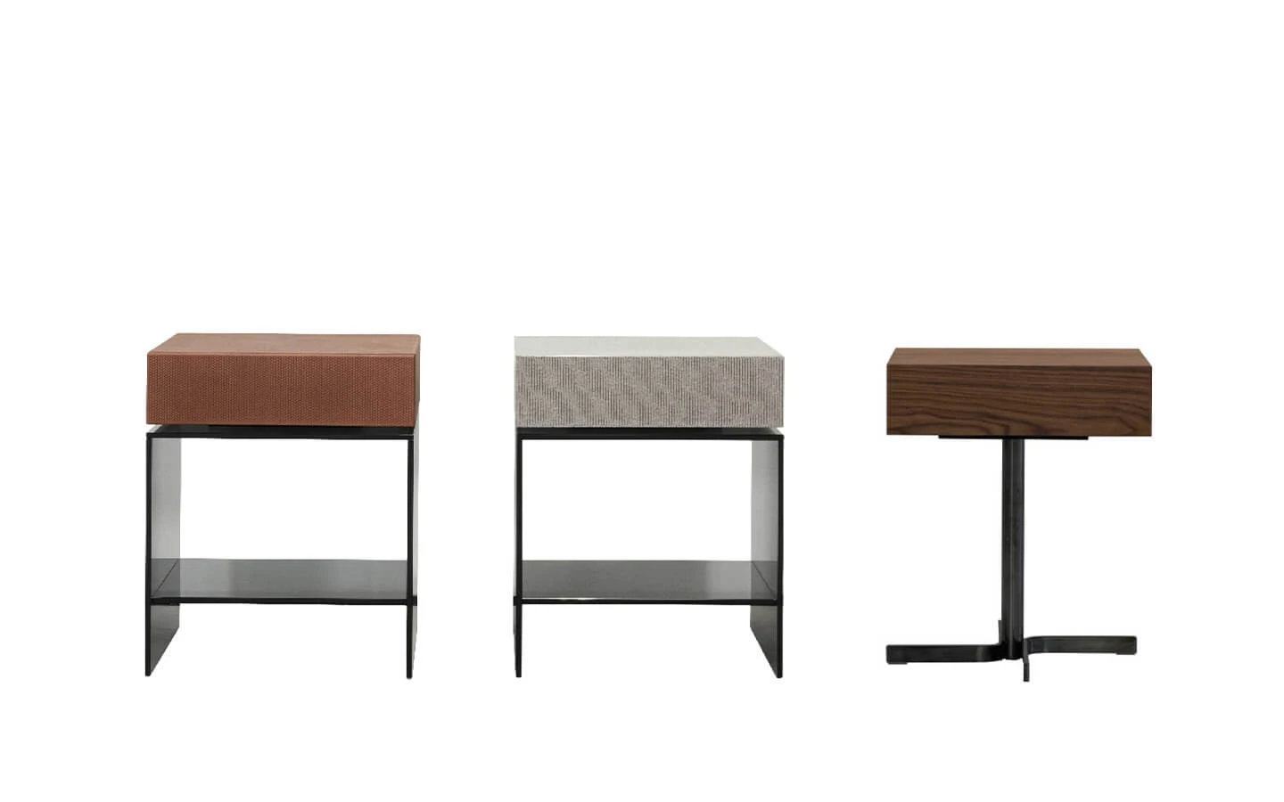 LIGHT е италианско нощно шкафче от колекцията на италианския производител CIERRE. Плотът и чекмеджето могат да бъдат изработени от фурнировано дърво – финиш по избор или тапицирани в кожа – по избор. Чекмеджето е с механизъм с плавно затваряне. Нощното шкафче се предлага с два вида основа: изработена от метал или стъкло – прозрачно или опушено. Цената се определя спрямо избора на вид основа и материала за шкафчето.