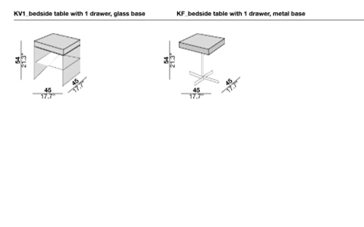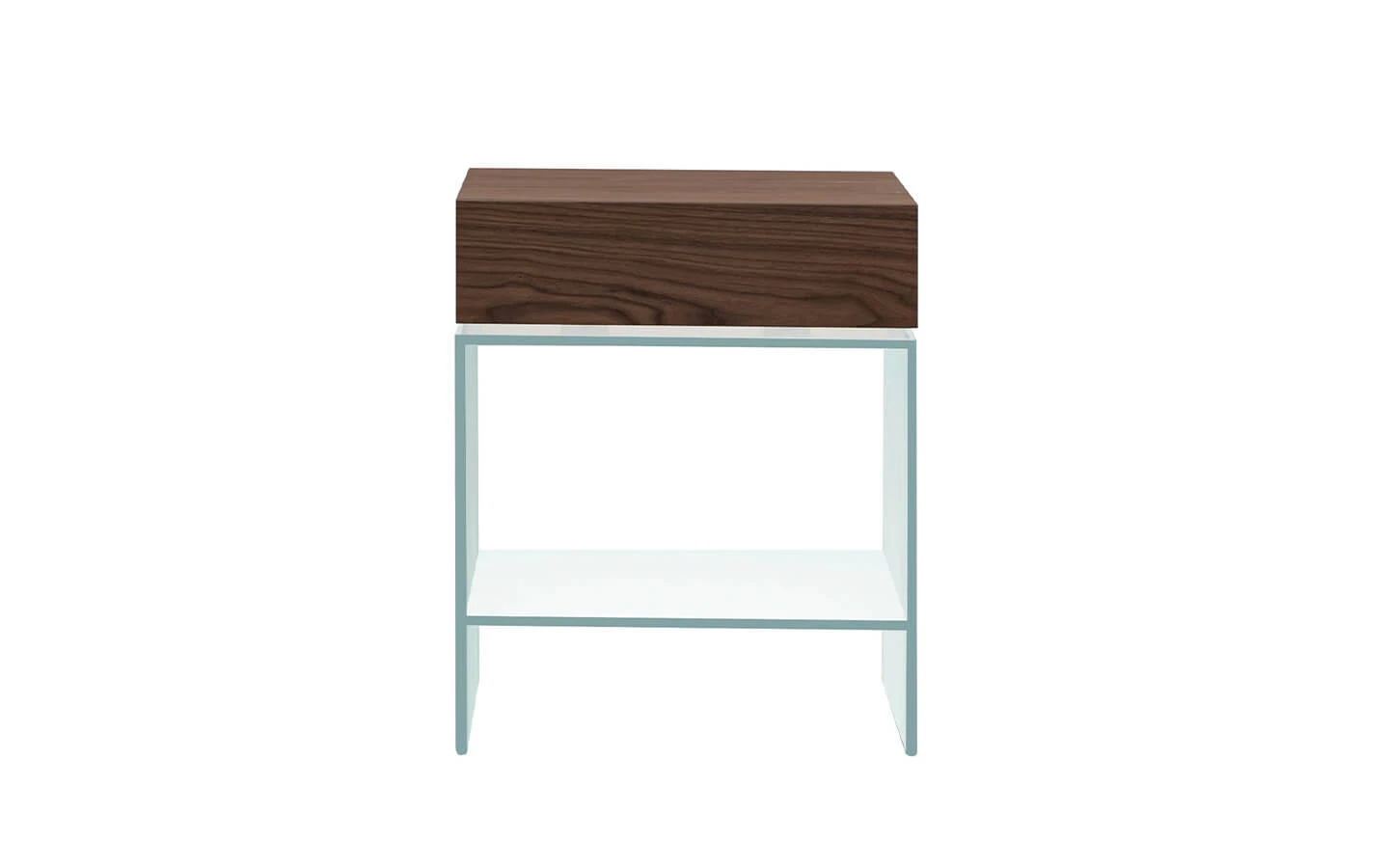 Посочената цена е за нощно шкафче с основа от стъкло, плот и чекмедже изработени от дърво.