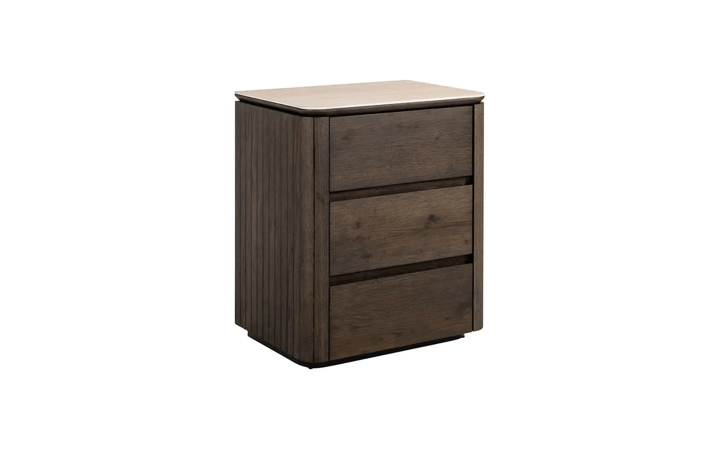 RITZ BROWN от RICHMOND INTERIORS е стилно и изискано нощно шкафче, което впечатлява с комбинация от естествена топлина и модерна елегантност. Корпусът е изработен в топъл дървесен тон с фина текстура, а дизайнът е завършен с красив плот, вдъхновен от травертин, който придава усещане за лукс и естествена изтънченост. Чистите линии и трите удобни чекмеджета със soft-close механизъм осигуряват практичност и комфорт, като предлагат достатъчно пространство за съхранение на всичко необходимо до леглото. RITZ BROWN е идеален избор за модерна спалня, където балансът между функционалност и висок клас естетика е важен. Шкафчето добавя уют, текстура и премерен лукс, превръщайки нощната зона в завършено, хармонично и стилно пространство.