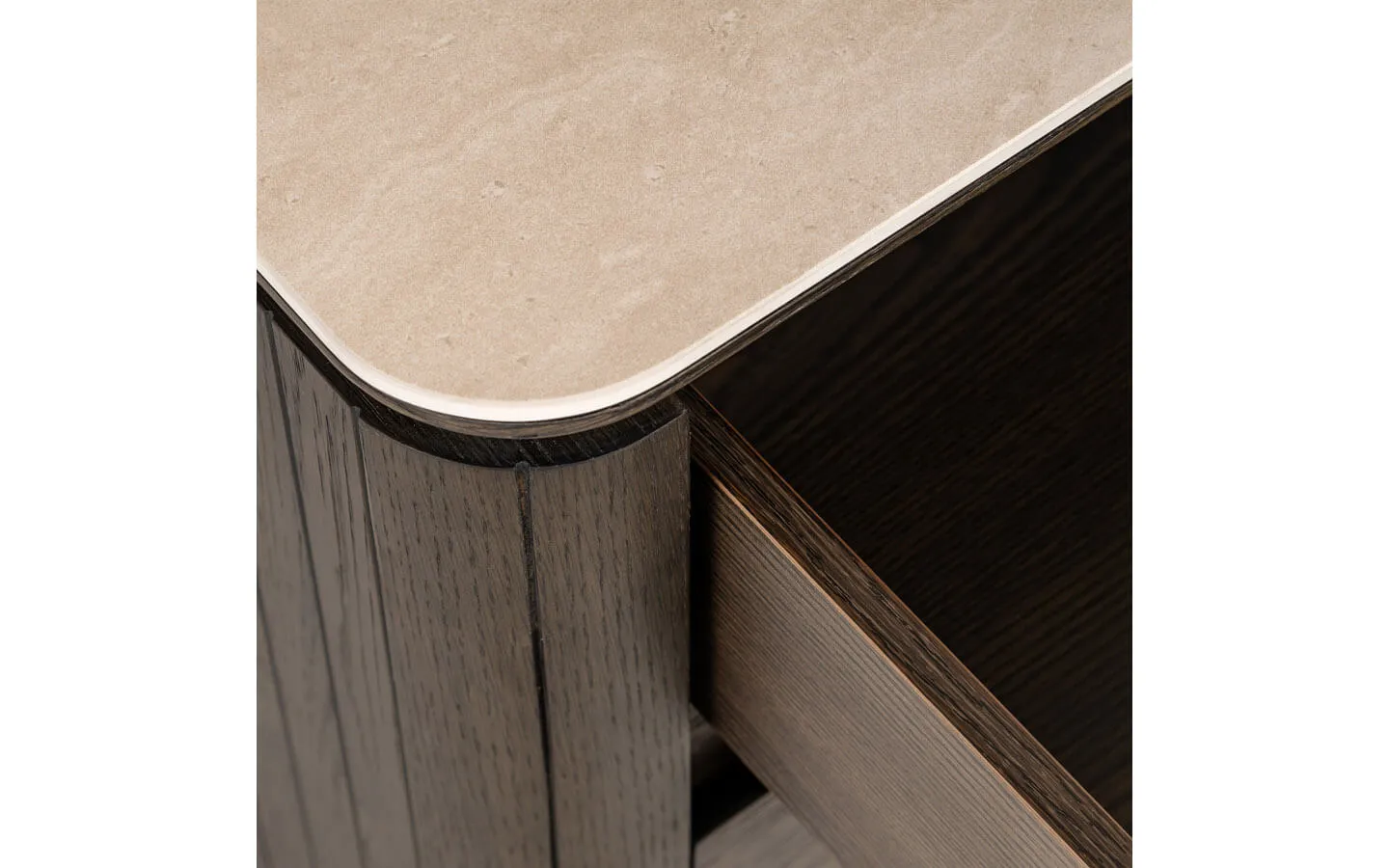 RITZ BROWN е нощно шкафче от колекцията на нидерландския бранд Richmond Interiors. Структурата и вратите са изработени от фурнировано дърво – финиш Brown. Плотът е изработен от Travertine Ceramic.