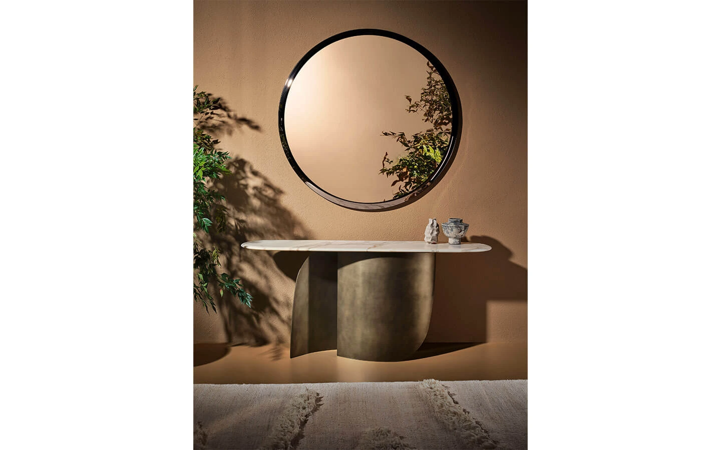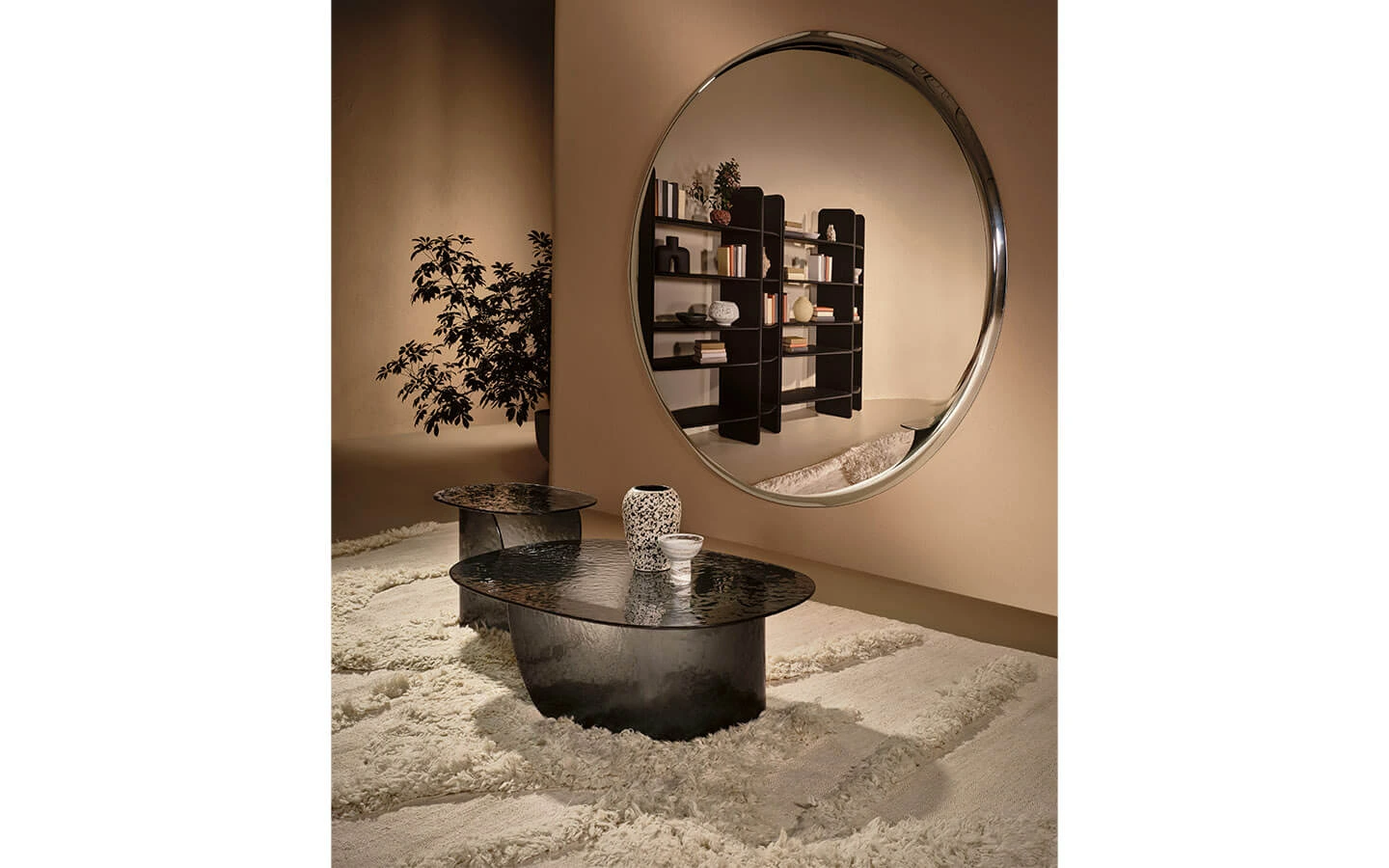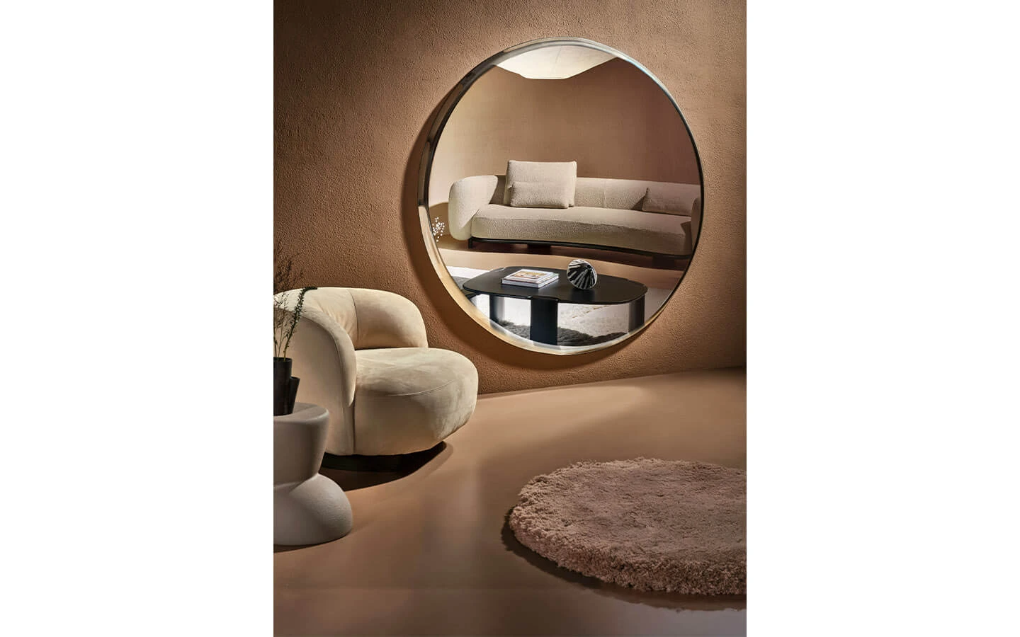 HALO от NATURE DESIGN е изчистено и изящно стенно огледало, което трансформира обикновения декоративен елемент в архитектурно изявление с минималистичен характер. Дизайнът се отличава с перфектно интегриран извит ръб, който плавно преминава в огледалната повърхност, създавайки ефект на непрекъснат поток и визуална лекота, без остри граници – резултат от иновативна технология и прецизно изпълнение. Формата е чиста и есенциална, което позволява на HALO да съчетава елегантност, иновация и функционалност, като предлага неограничено отражение и усещане за простор в пространството. Изчистеният, но изтънчен дизайн го прави подходящ за разнообразни интериорни стилове, добавяйки хармония и визуален фокус на стената, било то в дневна, антре или спалня. Огледалото се предлага в два основни диаметъра – Ø 120 см и Ø 185 см – с фин, тънък профил, който подчертава усещането за лекота и съвременна естетика.