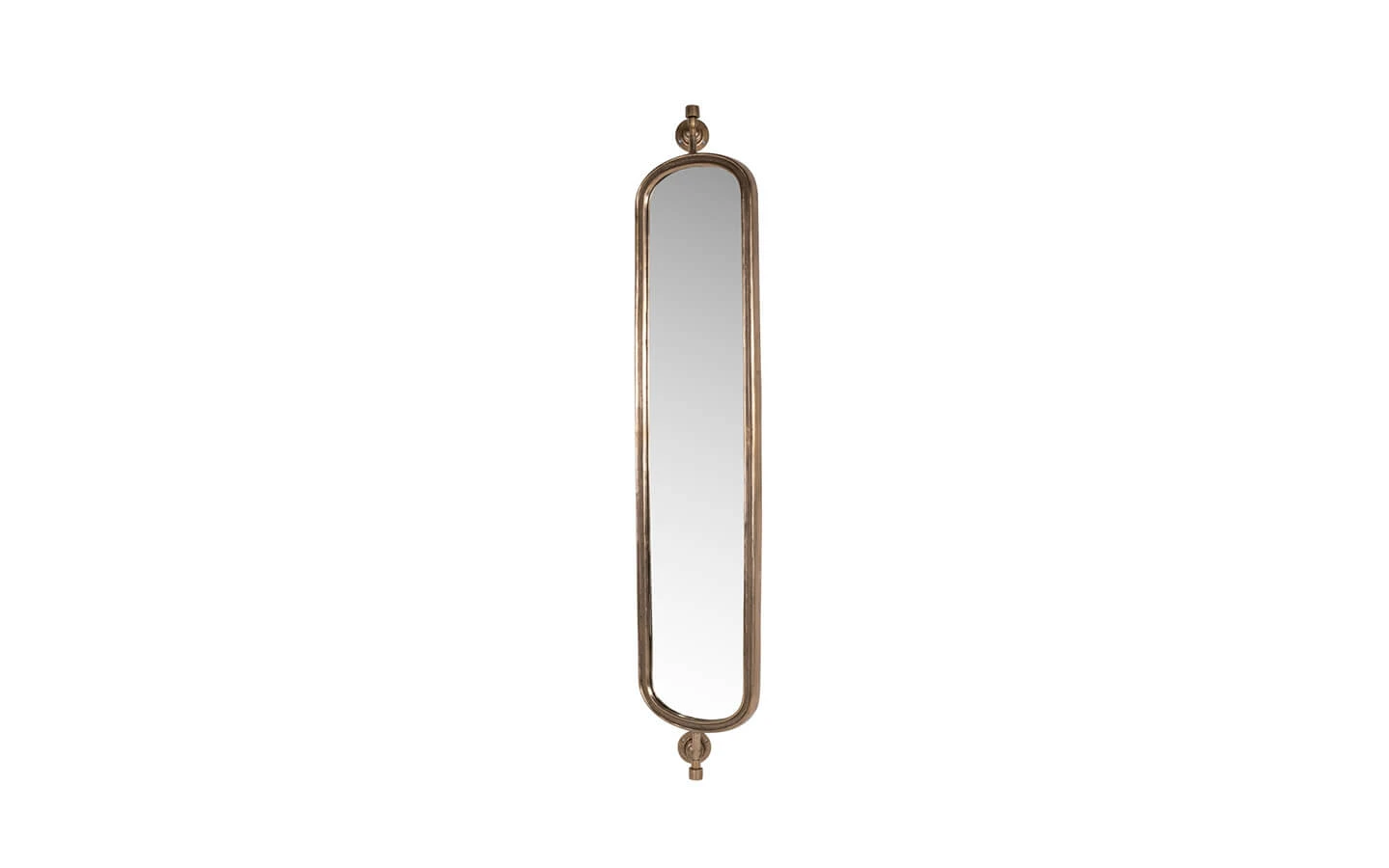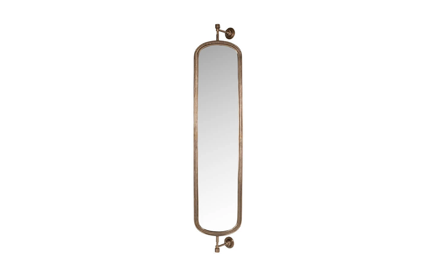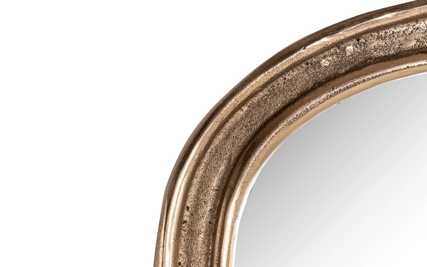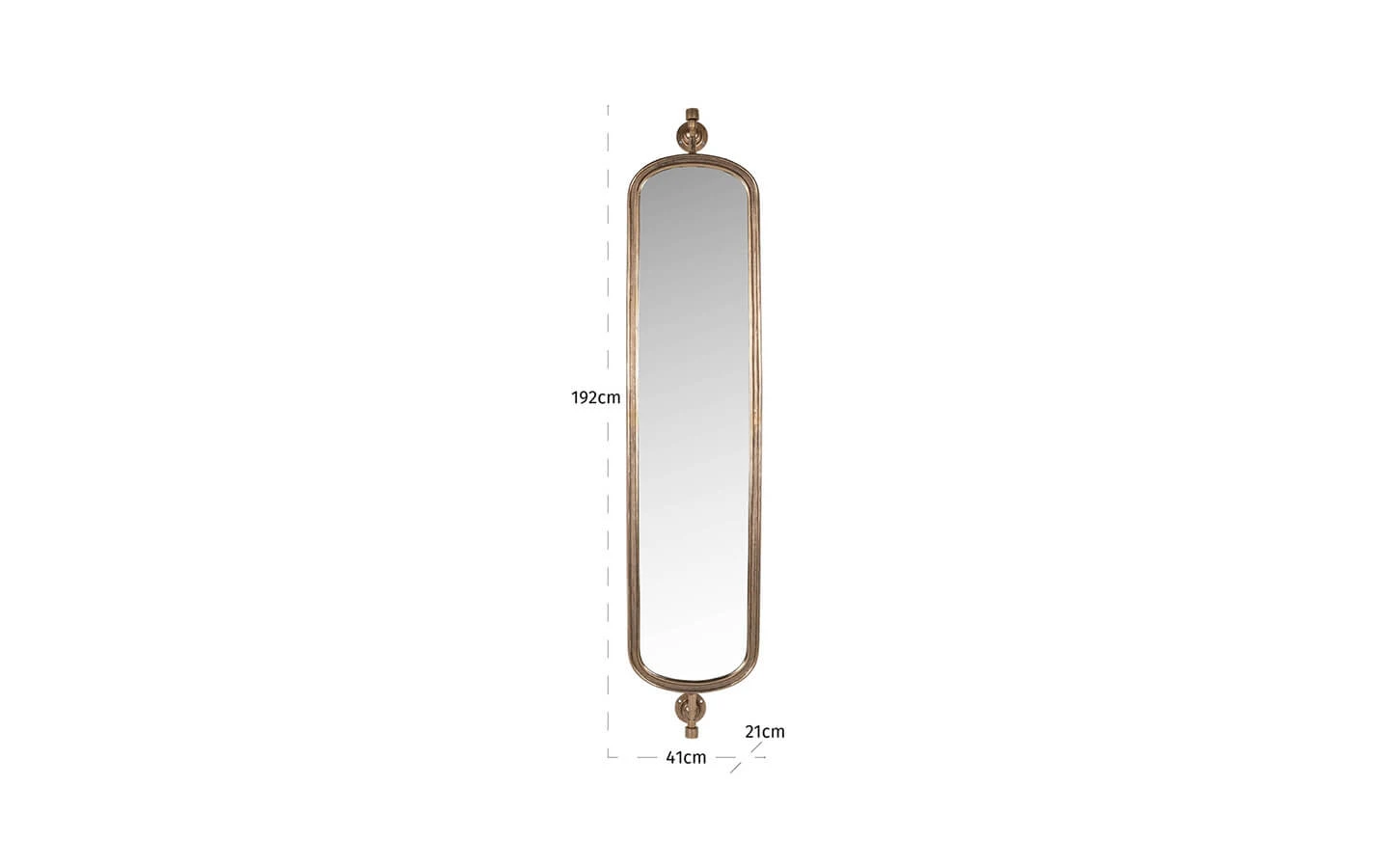HASTING BRASS ANTIQUE от RICHMOND INTERIORS е елегантно огледало с издължена форма и изискан дизайн, което съчетава модерна визия и винтидж вдъхновение. Моделът се отличава с плавно заоблена горна част и фина метална рамка в цвят Brass Antique, която има леко състарен ефект и придава топло и стилно излъчване. Този нюанс създава усещане за лукс и лесно се комбинира с различни интериорни стилове – от съвременни до по-класически пространства. Огледалото е изработено от комбинация от алуминий, MDF и огледално стъкло, което осигурява стабилност и качествена изработка. Благодарение на своята висока и елегантна форма, HASTING BRASS ANTIQUE от RICHMOND INTERIORS е подходящо за антре, спалня или дрешник, като освен практична функция добавя и декоративен акцент, който визуално разширява пространството и внася светлина в интериора.