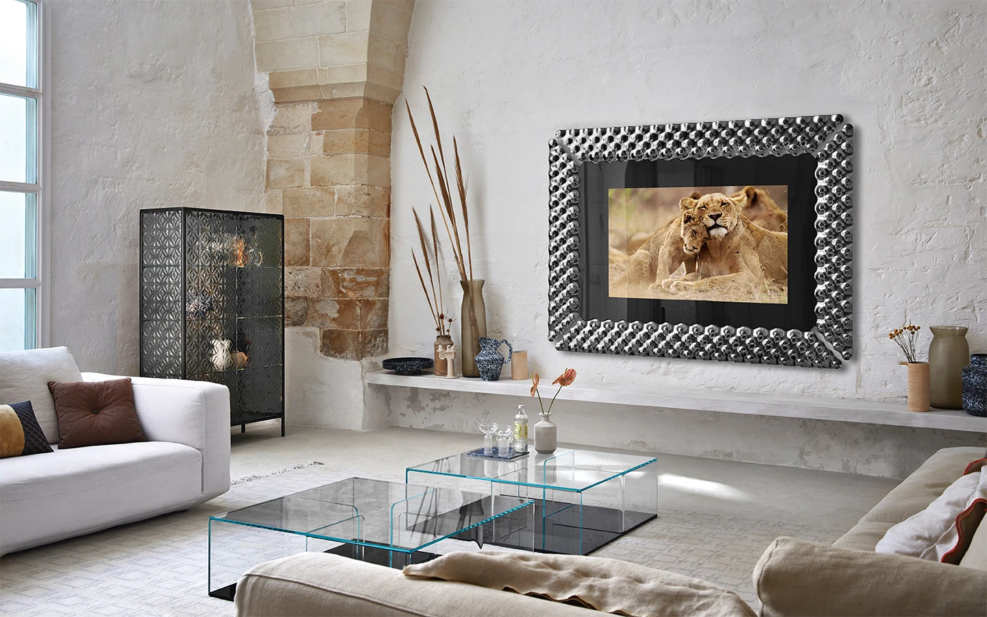 Огледалото/Рамка за телевизор POP TV, проектирано от Marcel Wanders за FIAM Italia, е огледало за стена, което интегрира телевизор, съчетавайки модерна технология с артистичен дизайн. POP TV е създадено така, че централното огледало да приюти плосък телевизор, превръщайки огледалото в развлекателен център, когато телевизорът е включен. Когато телевизорът е изключен, огледалото остава декоративен елемент, без да нарушава интериора. POP TV е пример за ангажимента на FIAM Italia към иновациите в дизайна, предлагайки съвършеното съчетание на технология и изкуство, което обогатява съвременните интериорни пространства.