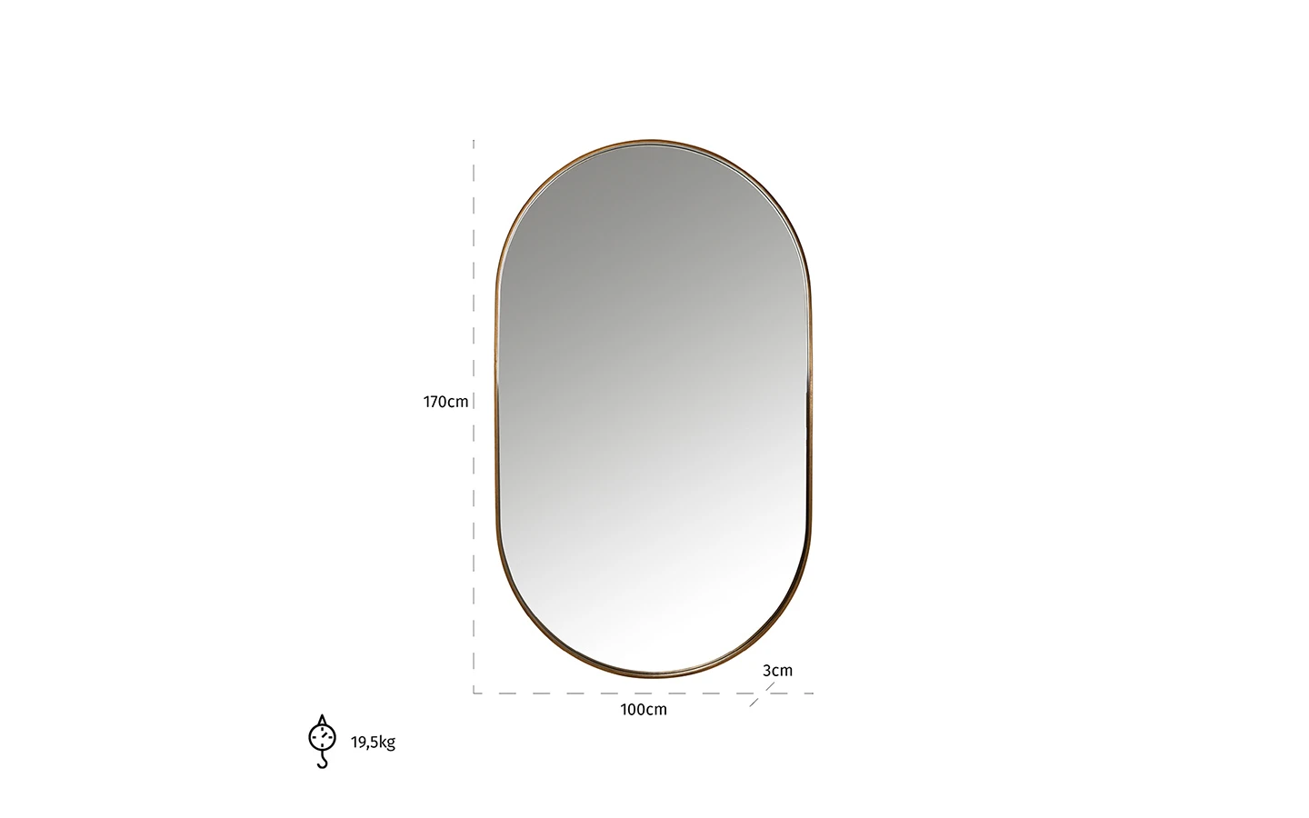 Огледалото SKYLAR от Richmond Interiors е елегантен стенен аксесоар с удължена овална форма и рамка от желязо в златист цвят. Минималистичният му дизайн придава изтънченост и стил, което го прави подходящо за различни интериори – от всекидневни до спални и коридори. Огледалото съчетава функционалност и декоративност, като допринася за естетическата стойност на всяко помещение.