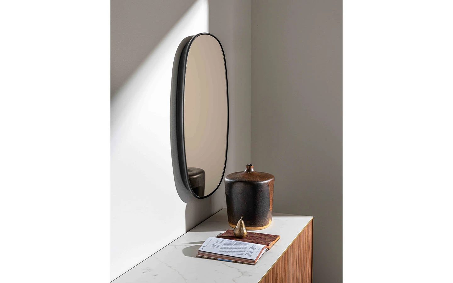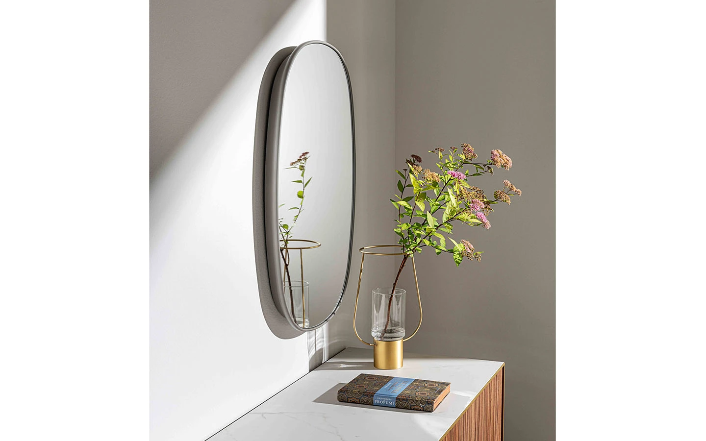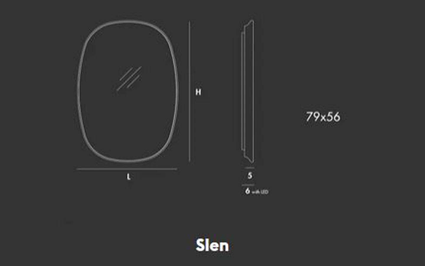 SLEN е италианско огледало от колекцията на италианския производител Sovet. Огледалото се предлага в натурално, опушено или бронзово стъкло. Рамката е изработена от дърво – финиш по избор на клиента. Огледалото се предлага и във вариант със скрито LED осветление. Цената се определя спрямо избора на огледало с или без LED осветление.