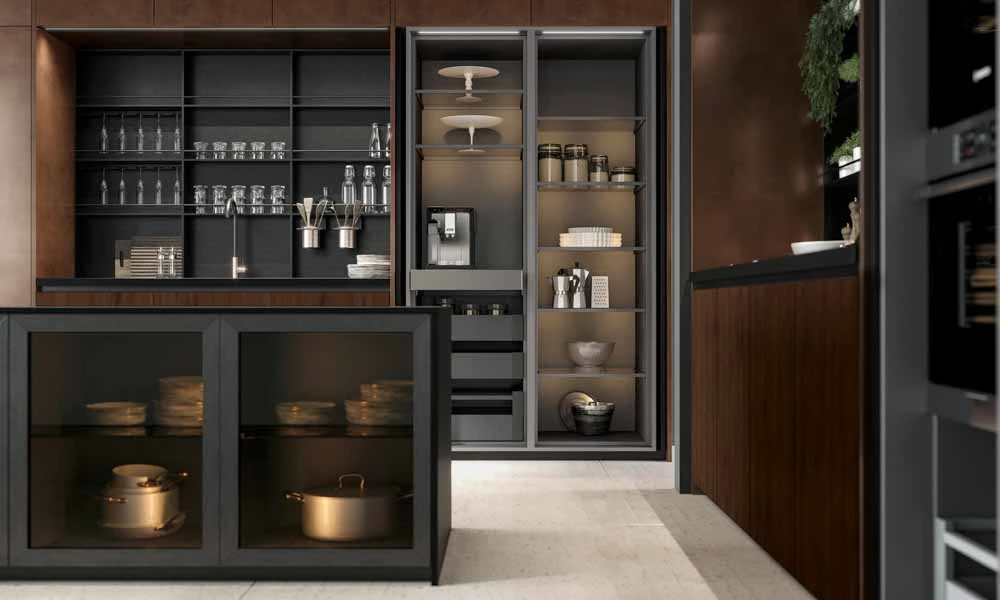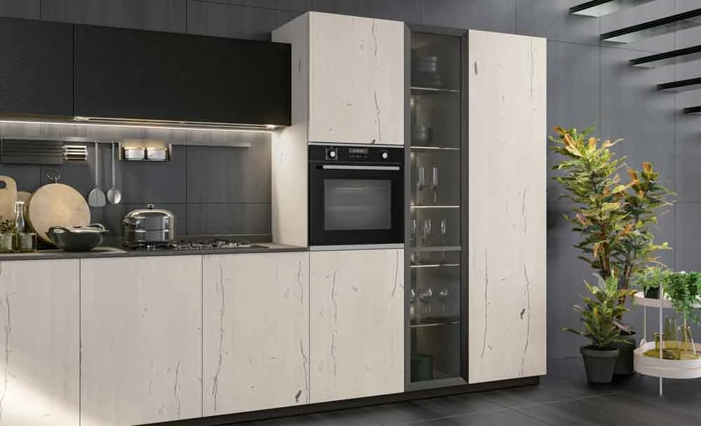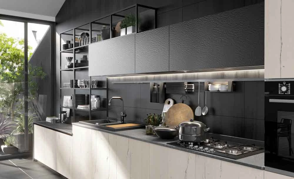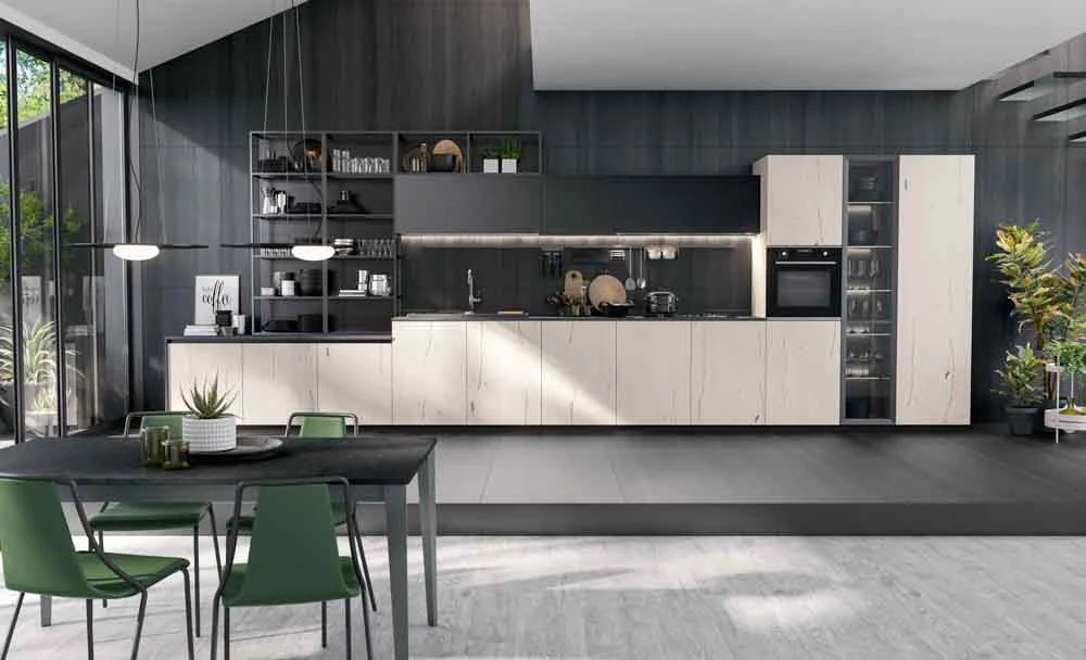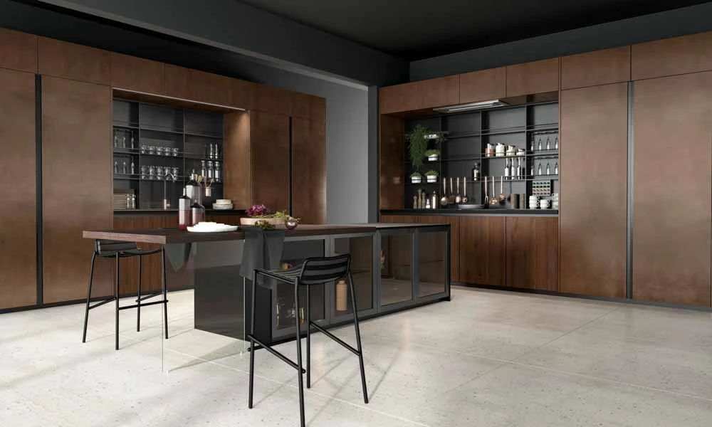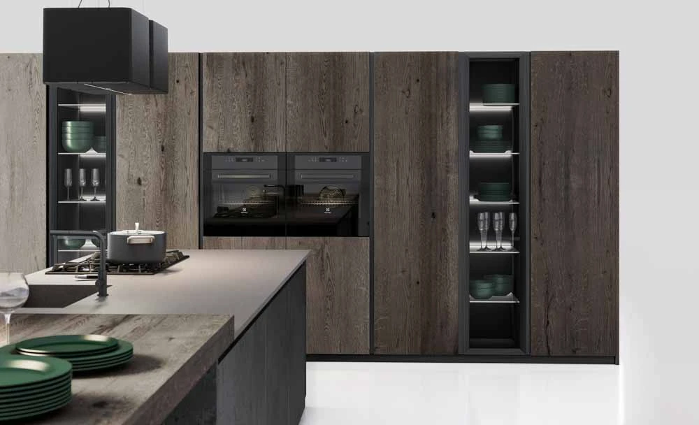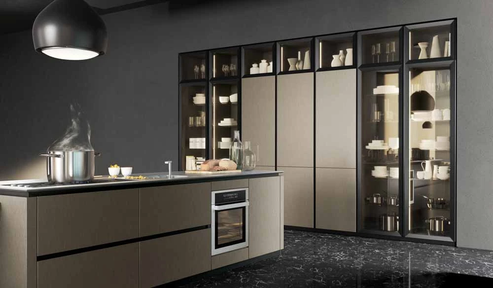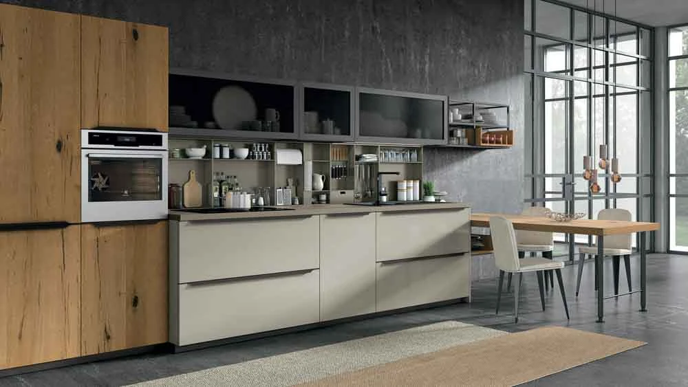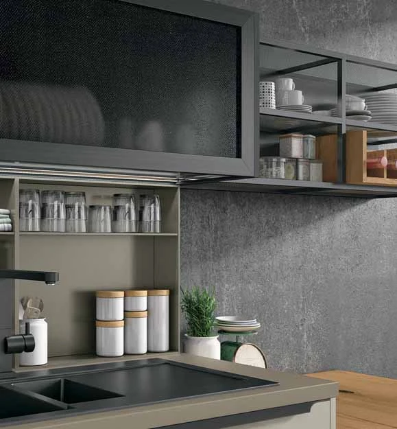 С колекцията OLTRE нашият екип може да удовлетвори естетичните предпочитания на всеки един клиент и да ги адаптира към всяко едно пространство предназначено за кухня, дневна или трапезария.