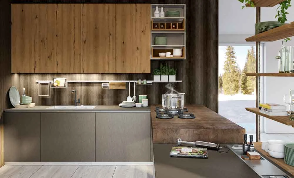 Кухнята OLTRE от италианския производител LUBE Cucine предлага строги линии и богато разнообразие на изявени дървестни покрития. Колекцията предлага много различни покрития, детайли и аксесоари, които я правят уникална в своя жанр. Цветовете и материалите от колекцията са проектирани, за да се съчетават елегантно, за да създадат изискан и изключителен интериор. Колекцията се характеризира с щателно внимание към детайла и високо ниво на модулност. OLTRE е звезда на кухнята, всекидневната и трапезарията, предлагайки изключителни дизайнерски решения за обзавеждане.