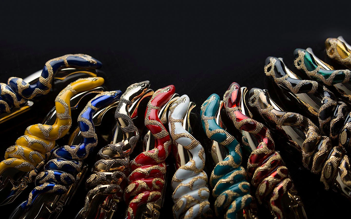Отварачка Snake в тъмносин цвят от колекцията Jewels на Roberto Cavalli Home Luxury Tableware. Идеален завършек за вашата маса.
