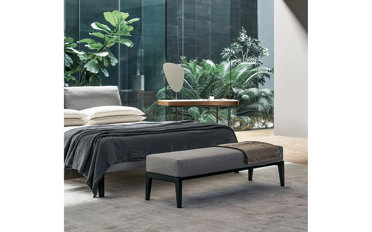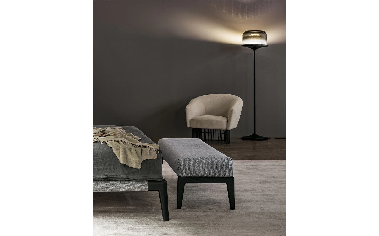 Пейката KRISS от Bonaldo е изискана мебел, която впечатлява с хармонията на използваните материали. Дългото, правоъгълно тяло е тапицирано с мек на допир плат или кожа с плюшено омекотяване, което създава елегантно съчетание с дървената основа, състояща се от четири повдигнати крачета. Тя предлага комфорт и стил, идеално допълваща края на леглото, особено в комбинация с леглото от колекцията KRISS.