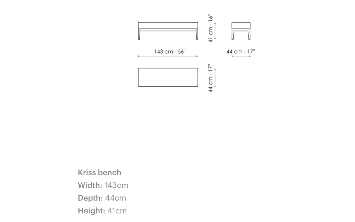 KRISS BENCH е италианска пейка от колекцията на италианския производител Bonaldo. Италианската пейка KRISS може да бъде тапицирана в дамаска, еко кожа или кожа – материал и цвят по избор на клиента. Краката са изработени от масивно дърво – финиш по избор на клиента. Цената на пейката се формира на база на избора на тапицерия и финиш на масивното дърво за краката. KRISS BENCH е с размери см. 143/44/41H.