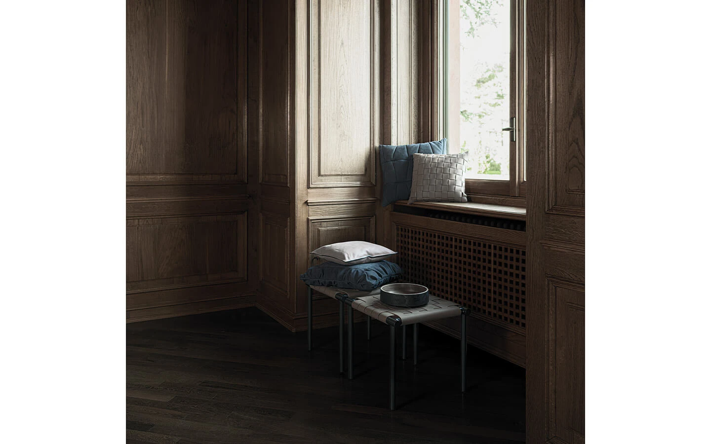 JARED от CIERRE е изящна пейка/табуретка, която съчетава майсторска изработка, модерна визия и артистичен характер. Този модел се отличава със своята тънка, но стабилна метална конструкция. Седалката е изработена от внимателно ръчно плетена кожа със специално оформени ръбове, което придава текстуриран, изискан външен вид и усещане за лукс. Дизайнът на JARED е минималистичен, но носи характерна италианска естетика – логична, рационална повърхност, обгърната от ръчно тъканата кожа, която създава визуално спокойствие и приятна зона за сядане.