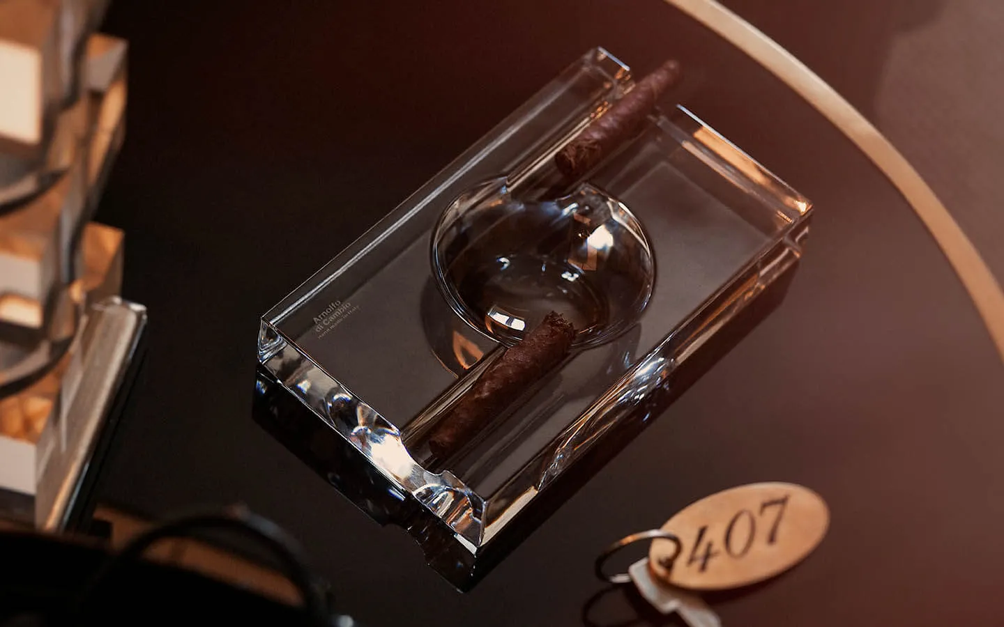 MONTECRISTO от ARNOLFO DI CAMBIO е изискан кристален пепелник за пури, който съчетава функционалност и елегантен италиански дизайн. Изработен от висококачествен прозрачен кристал, той впечатлява с изчистени линии, масивна, но хармонична форма и прецизно оформени повърхности, които улавят и пречупват светлината, създавайки красиви отражения и усещане за лукс. MONTECRISTO предлага удобно пространство за поставяне на пури и събиране на пепел, като същевременно служи и като декоративен обект със скулптурно присъствие. Този аксесоар не е просто практичен, а стилен акцент във всеки интериор — от хол или кабинет до бар зона — който подчертава вкуса и вниманието към детайла в обзавеждането, превръщайки ежедневния ритуал в изживяване с характер и изтънченост.