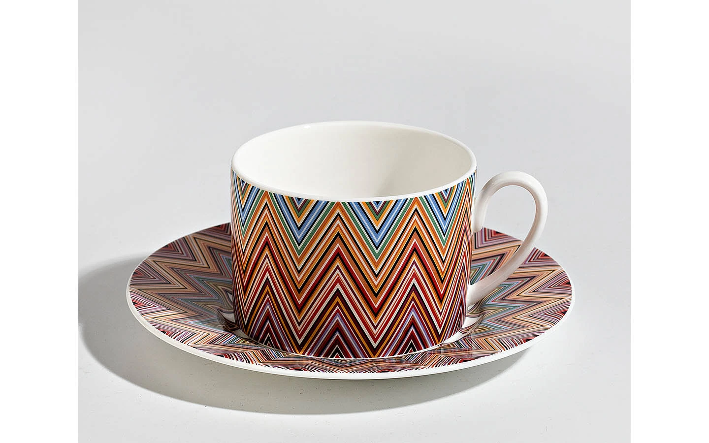 Подаръчен комплект за чай, Сет от 12 части от колекцията Zig Zag Jarris 156 на Missoni Home. Идеална за добавяне на цвят във всеки дом, тази колекция от фин костен порцелан е украсена с дизайна Jarris – изискана интерпретация на емблематичния зиг заг на Missoni.