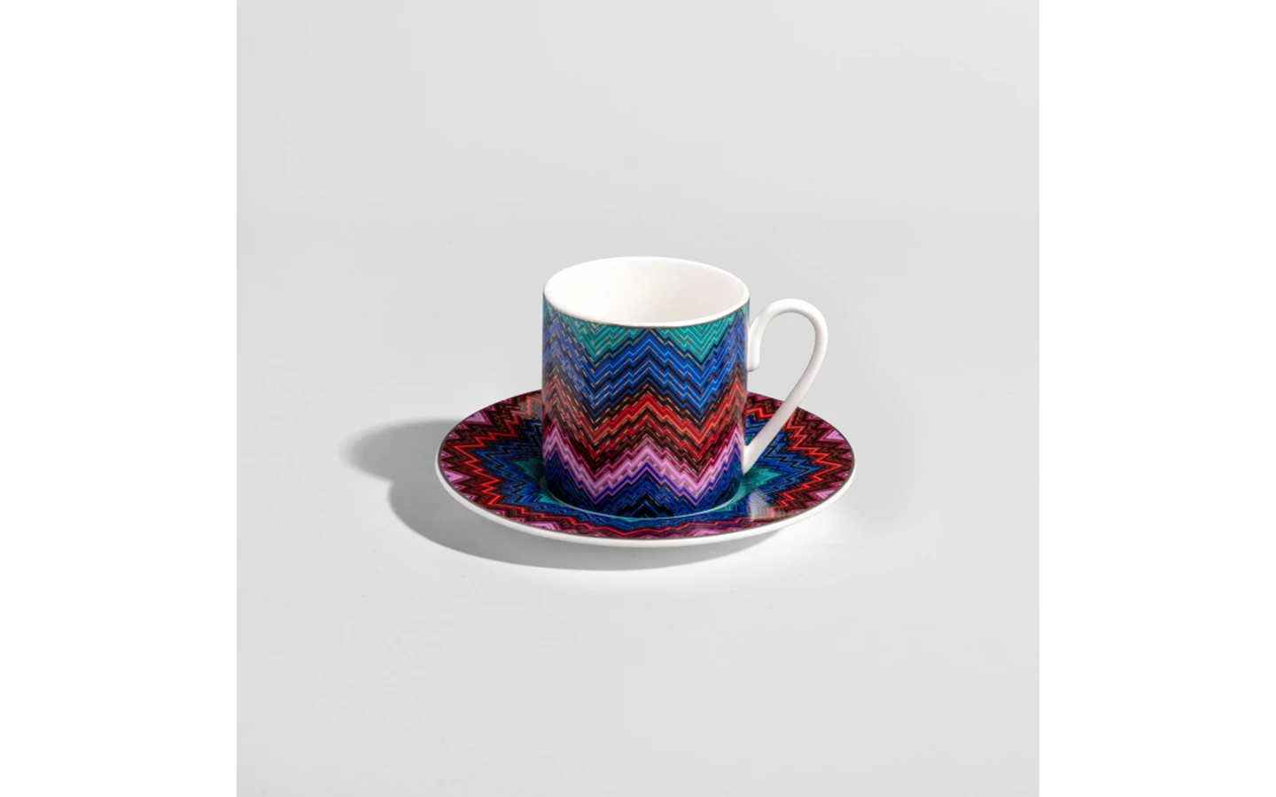 Подаръчен комплект за кафе, Сет от 12 части от колекцията Starlight на Missoni Home. Тази зашеметяваща колекция от фин костен порцелан е характерна и цветна – всичко, което бихте очаквали от серия на Missoni Home. Колекцията Starlight се отличава с характерните за марката зигзагообразни шарки и богати цветови палитри.