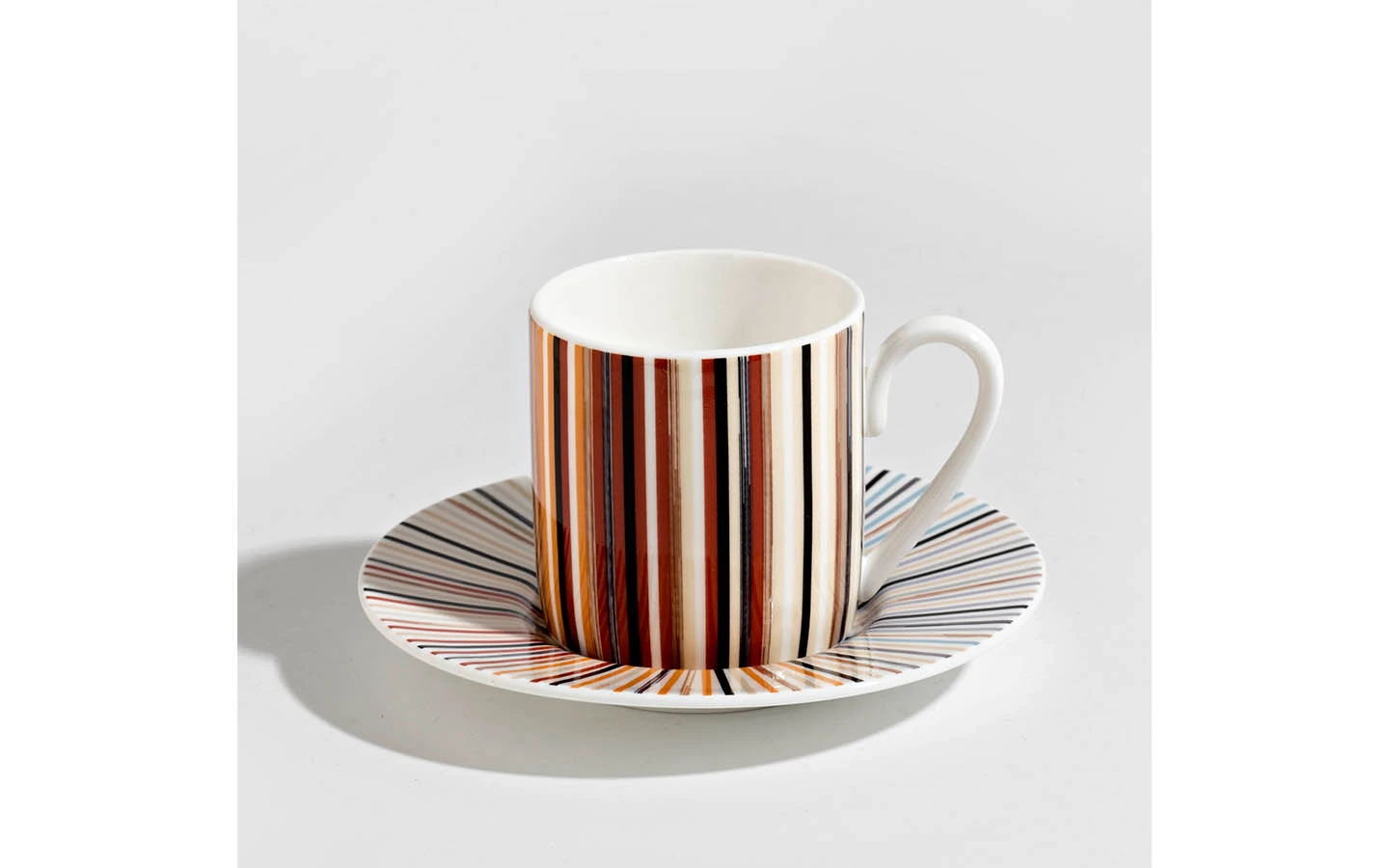 Подаръчен комплект за кафе, Сет от 4 части от колекцията Stripes Jenkins 148 на Missoni Home. Идеална за добавяне на цвят във всеки дом, тази колекция от фин костен порцелан е украсена с многоцветен раиран дизайн, характерен за Missoni.