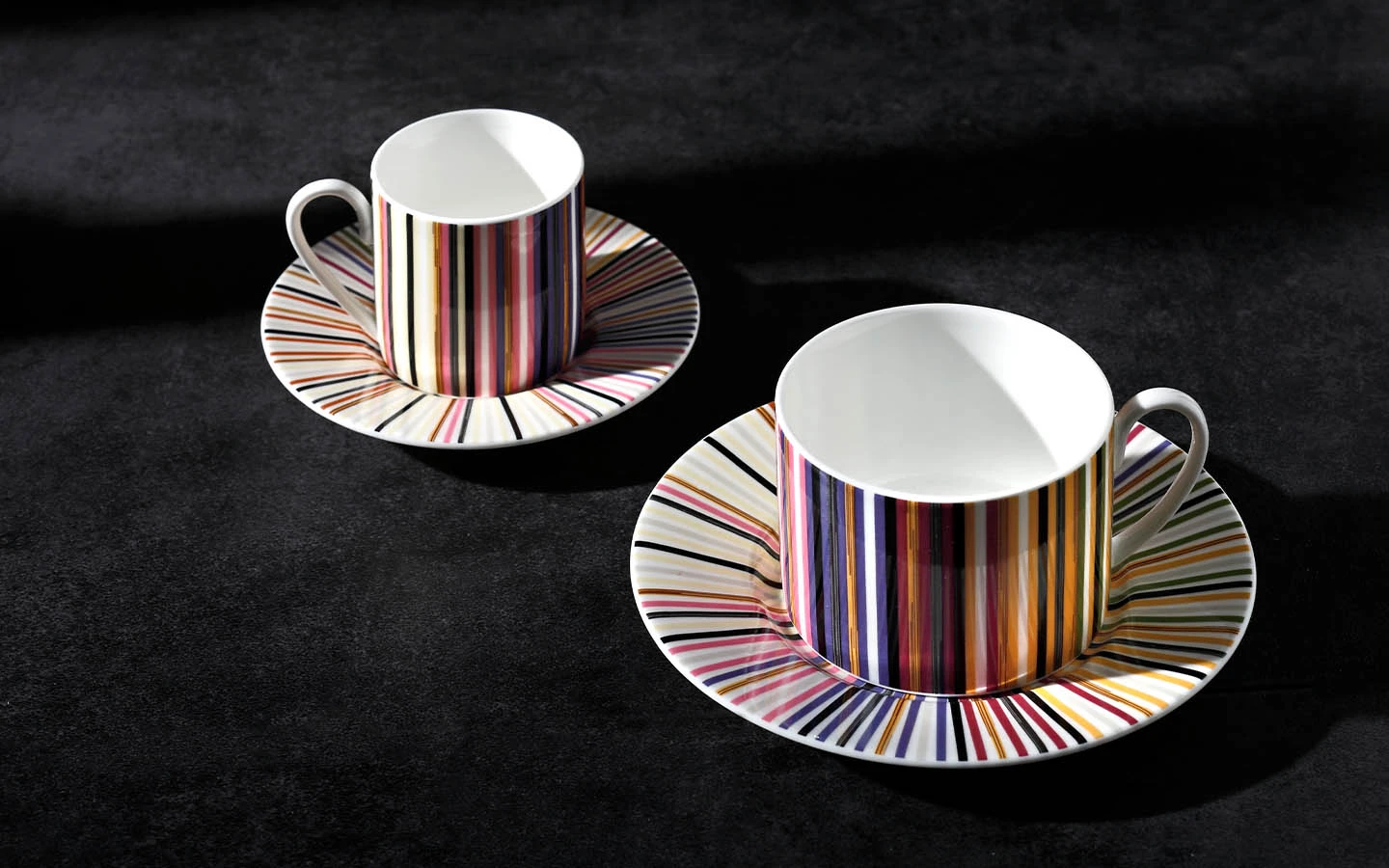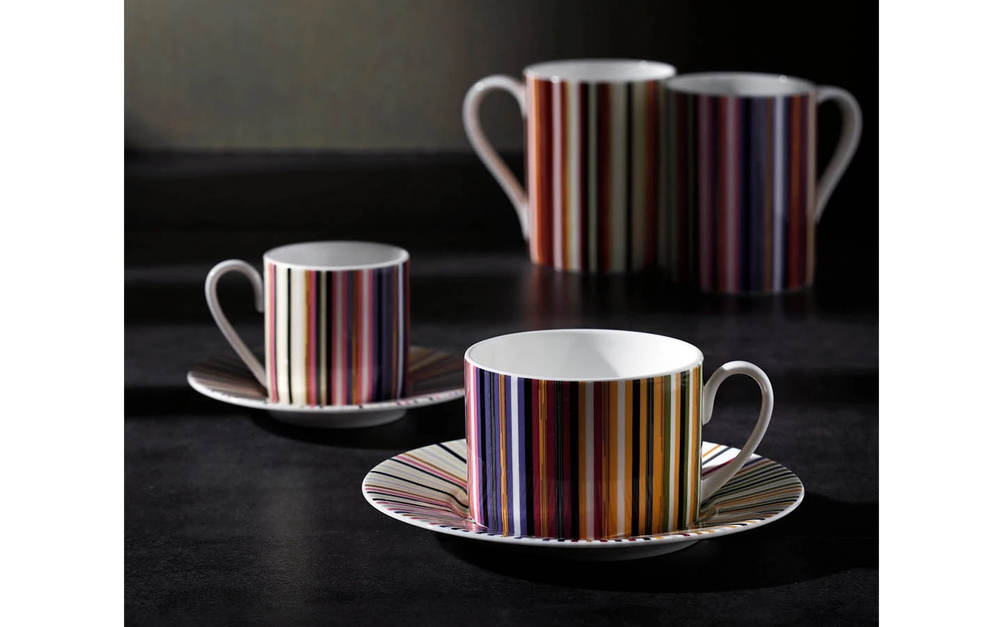 Подаръчен комплект за кафе, Сет от 12 части от колекцията Stripes Jenkins 156 на Missoni Home. Идеална за добавяне на цвят във всеки дом, тази колекция от фин костен порцелан е украсена с многоцветен раиран дизайн, характерен за Missoni.