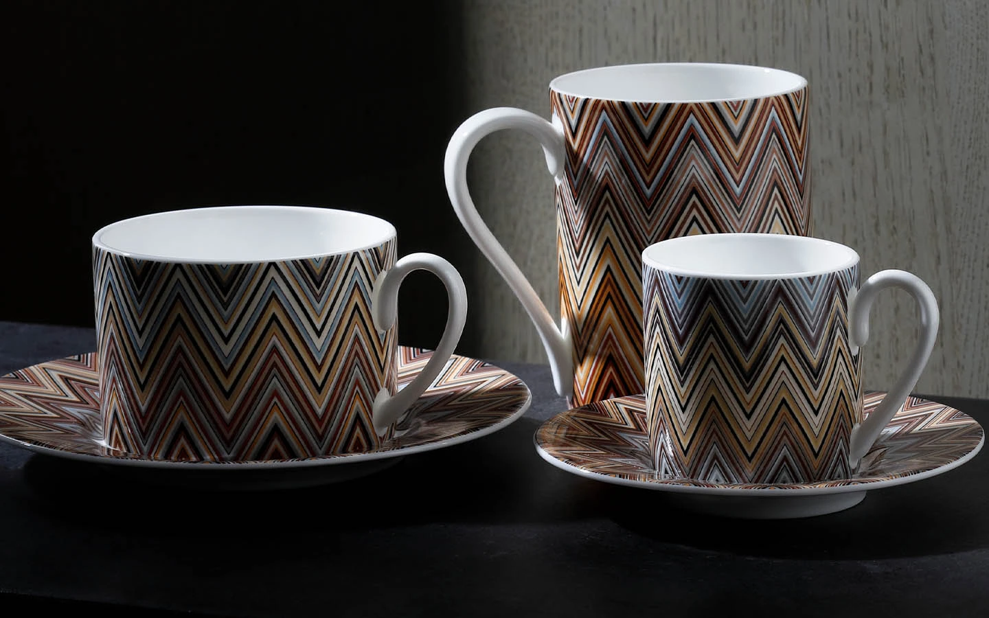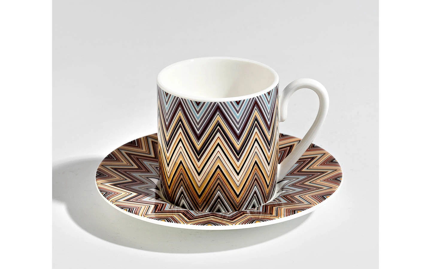 Подаръчен комплект за кафе, Сет от 12 части от колекцията Zig Zag Jarris 148 на Missoni Home. Идеална за добавяне на цвят във всеки дом, тази колекция от фин костен порцелан е украсена с дизайна Jarris – изискана интерпретация на емблематичния зиг заг на Missoni.