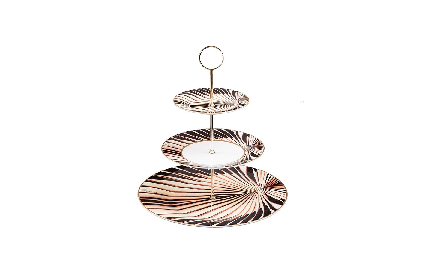 Поднос на три нива от колекцията Tigress Gold от Roberto Cavalli Home. Луксозната серия Tigress Gold представя емблематичен дизайн на Roberto Cavalli. 100% фин костен порцелан с Tigress Gold дизайн.