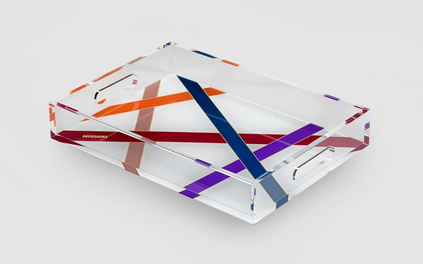 Поднос Medium от колекцията Nastri Multicolor от Missoni Home. Тази зашеметяваща колекция от акрилно стъкло е характерна и цветна – всичко, което бихте очаквали от серия на Missoni Home. Колекцията се характеризира с хармония, класика и елегантност.