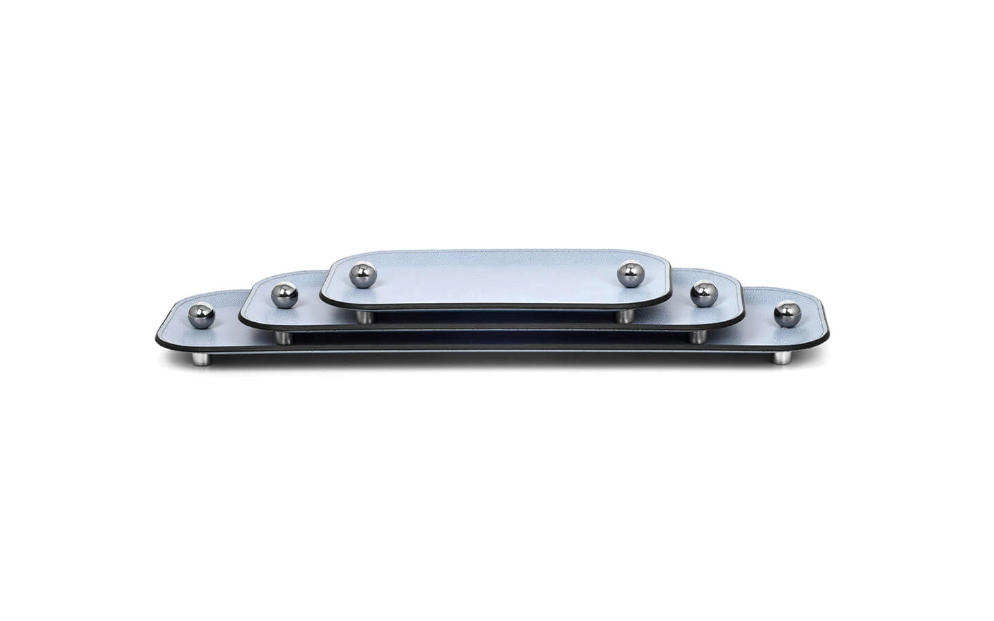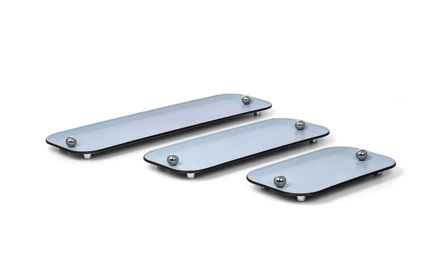 OLIMPIA TRAY MEDIUM от PINETTI във финиш chrome предлага модерно, минималистично усещане. Размерът 36×15 см осигурява достатъчно място за подреждане на ежедневни принадлежности или декоративни предмети, а хромираният метал в комбинация с фината кожа придава усещане за чистота, ред и съвременен стил.
