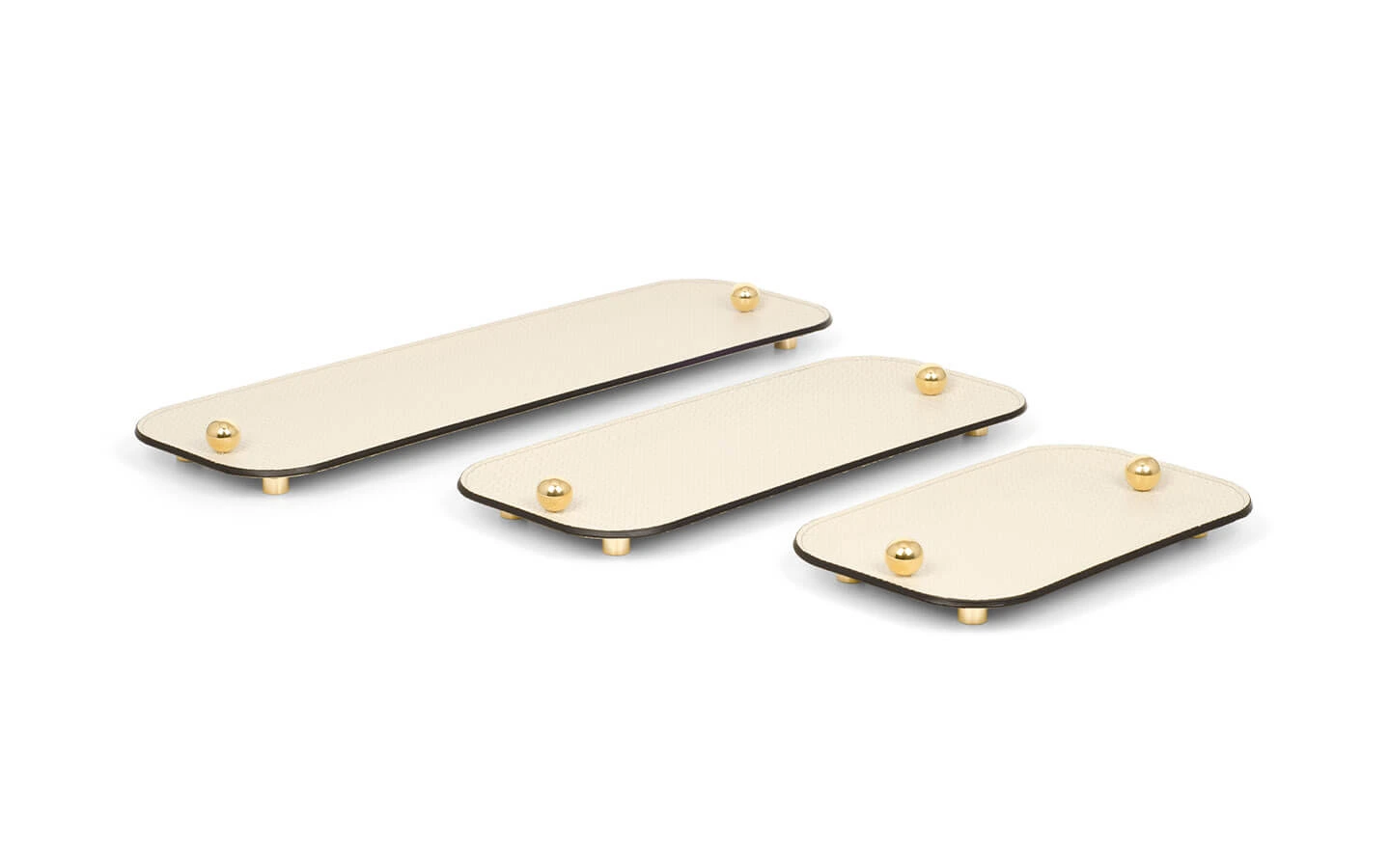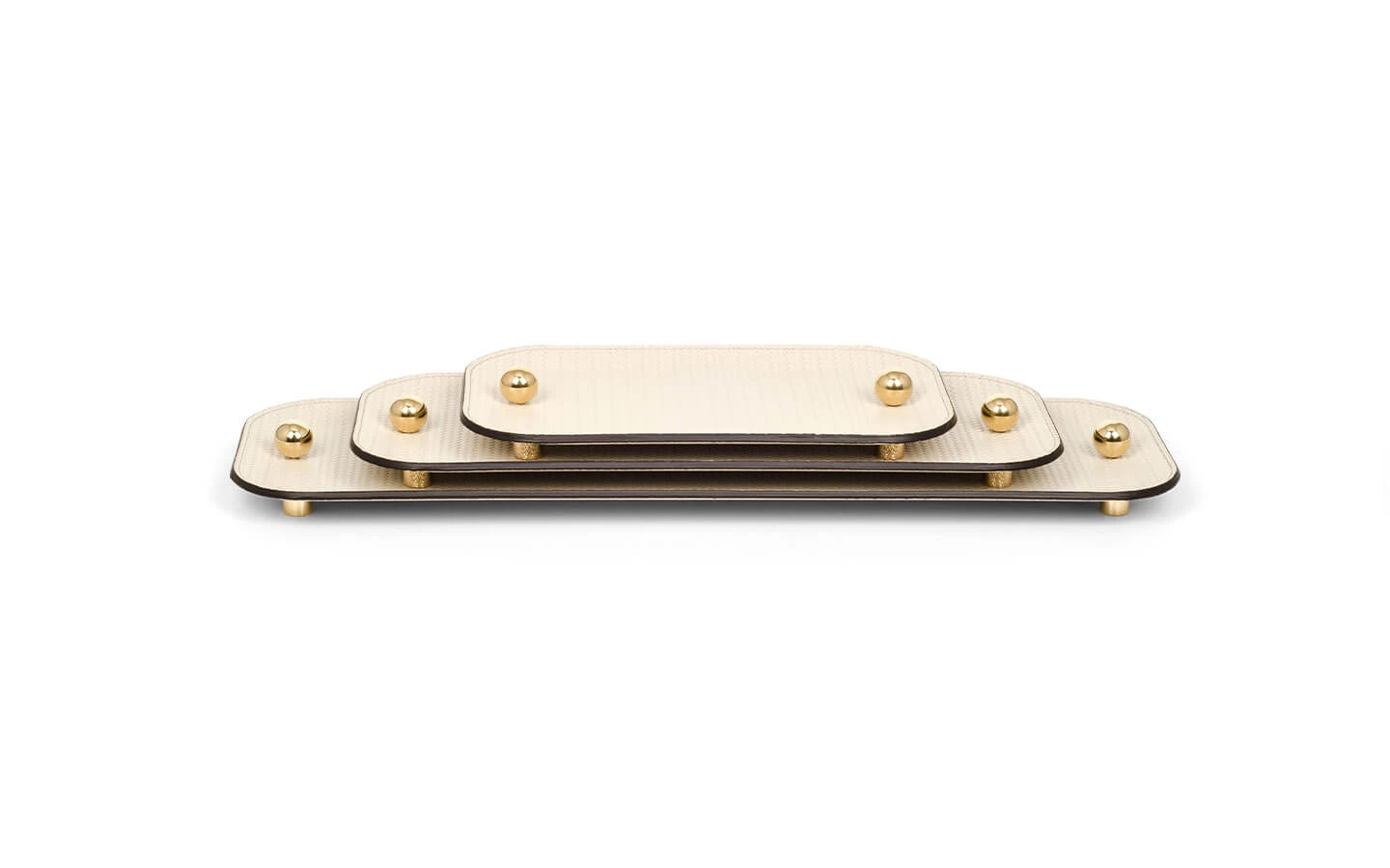 OLIMPIA GOLD SMALL е поднос от колекцията на италианския производител PINETTI. Подносът е изработен от естествена кожа – вид по избор. Детайлите са изработени от метал – финиш Gold. Размерите са см. 25/15. Цената се определя спрямо избора на вид кожа.