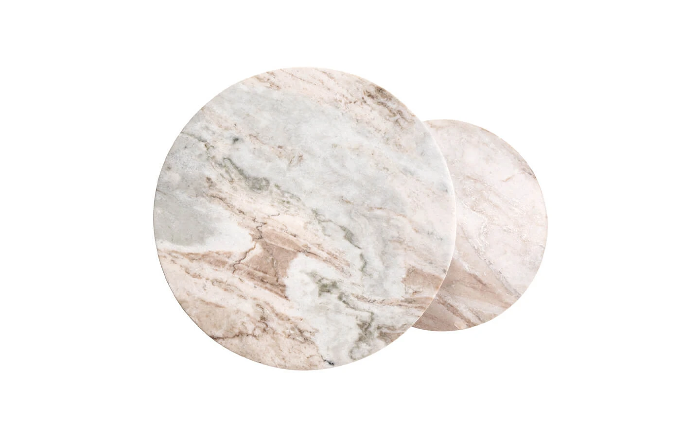 Сет от две помощни маси BOTTEGA BLUSH BEIGE от колекцията на нидерландския производител Richmond Interiors. Структурата е изработена от метал. Плотът е изработен от мрамор Toronto – финиш Blush Beige.