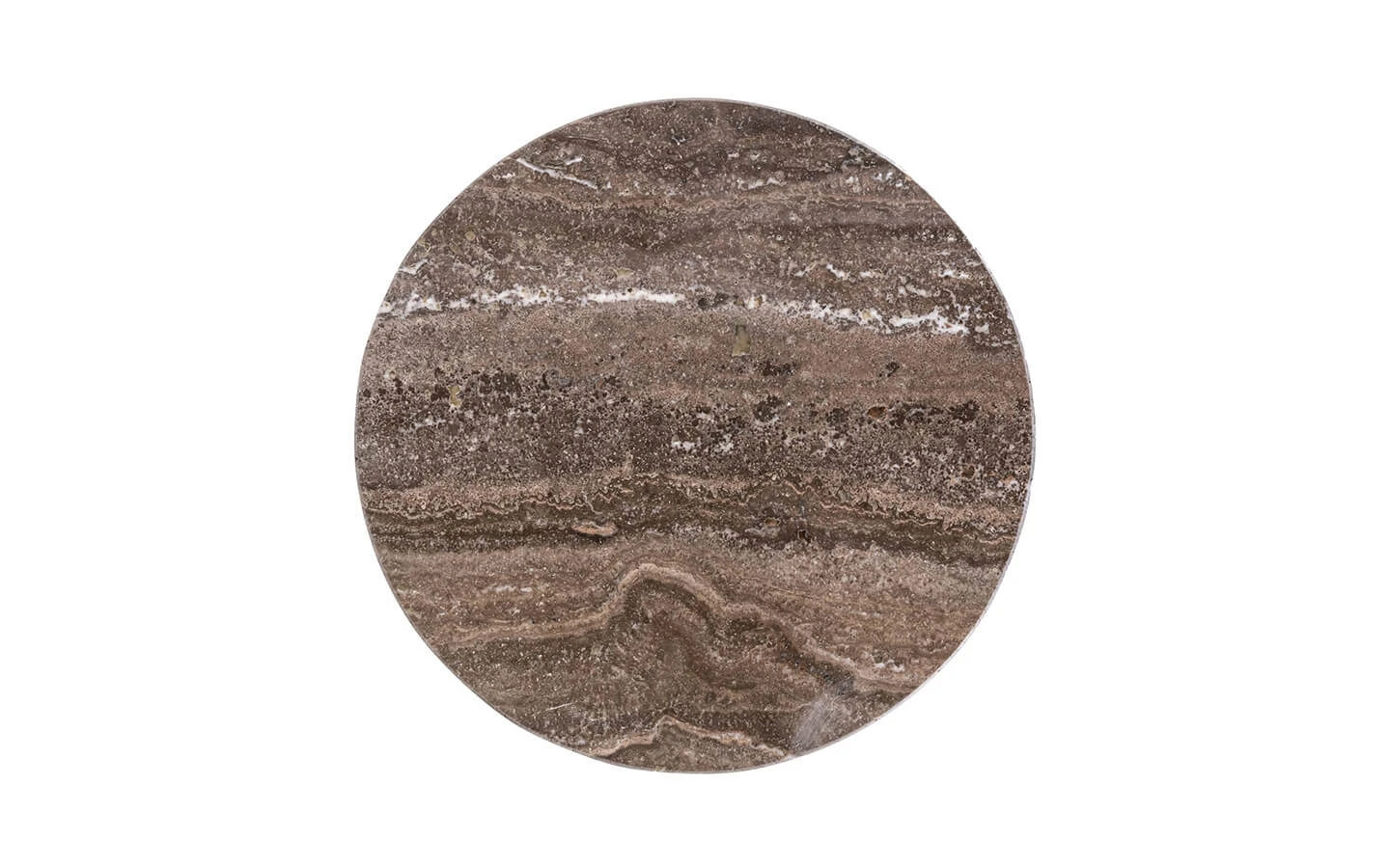 ELDORA BRONZE Ø30 е помощна маса от колекцията на нидерландския производител Richmond Interiors. Основата е изработена от метал – финиш Bronze. Плотът е изработен от травертин.