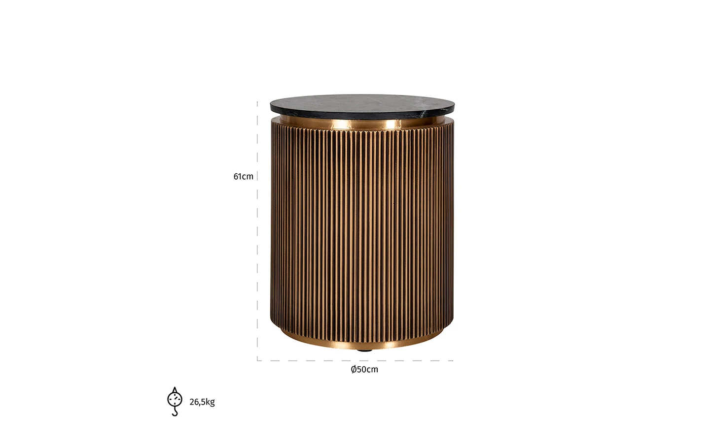 IRONVILLE 50Ø е помощна маса от колекцията на нидерландския производител Richmond Interiors. Структурата е изработена от метал и MDF – финиш Gold. Плотът на помощната маса е изработен от мрамор – Black marine.