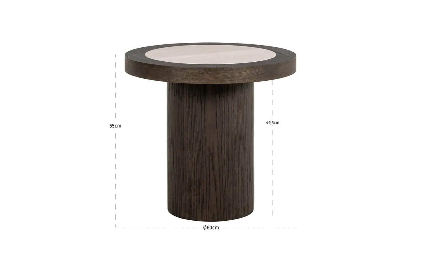 NANDO BROWN е помощна маса от колекцията на нидерландския бранд Richmond Interiors. Структурата е изработена от фурнировано дърво – финиш Brown. Плотът на помощната маса е изработен от Travertine Ceramic.